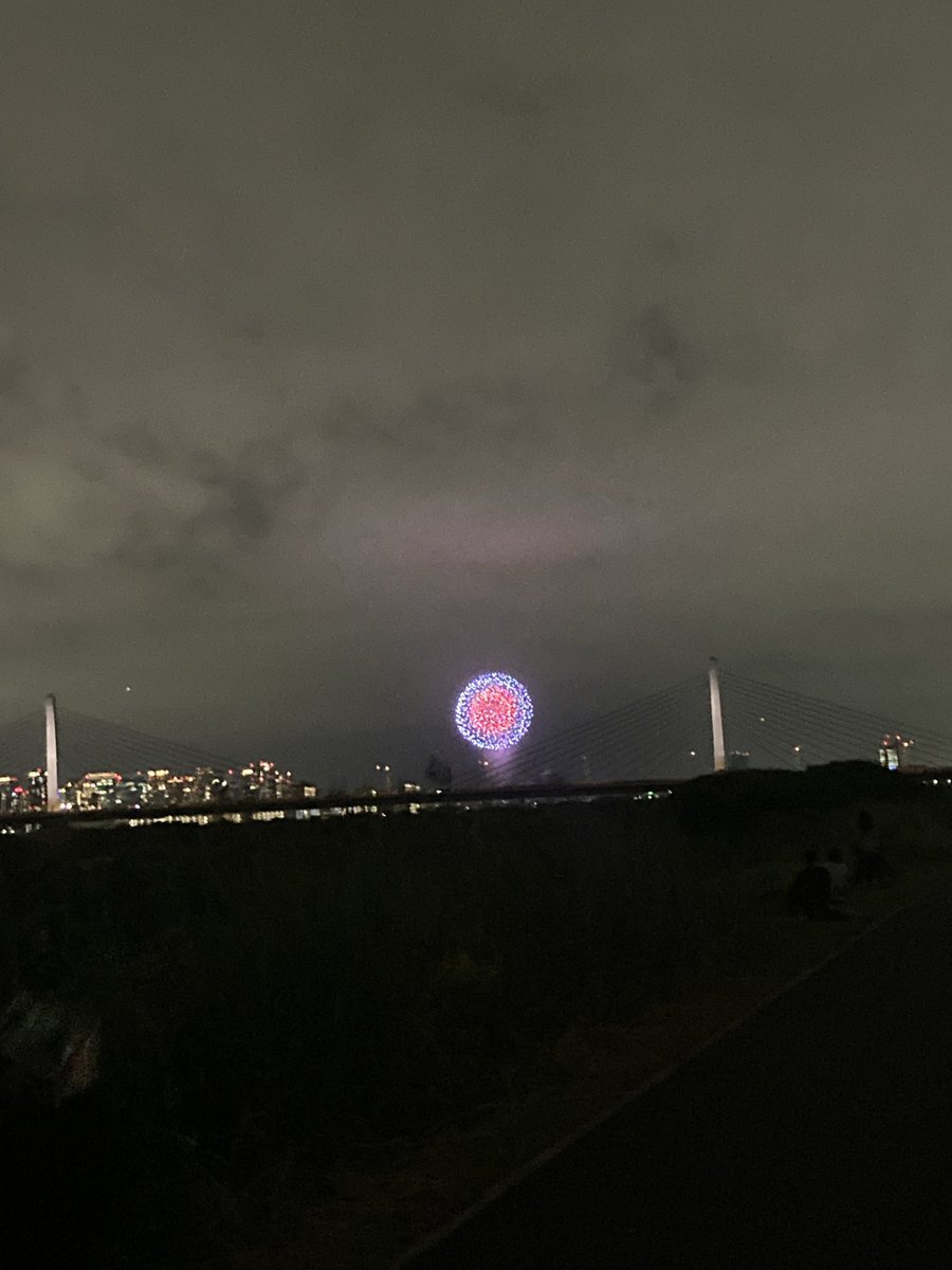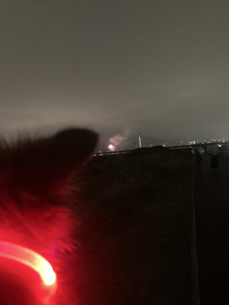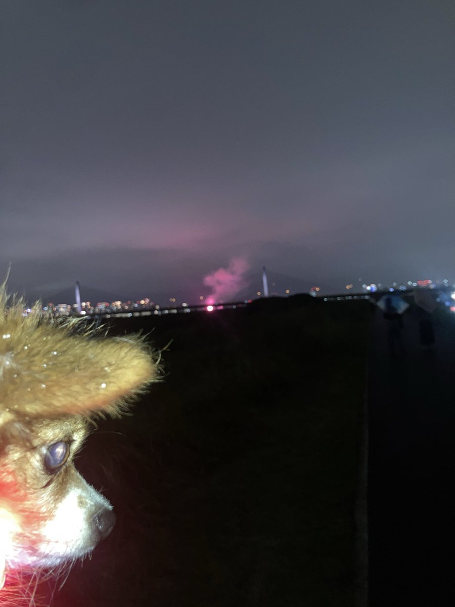 初めての花火。コラボ写真上手い事いかん😅。うちの子は雷も花火の音も全然びびらんし、遠くからならいけるだろうと思い行きました。案の定全く動じず心拍数も上がらんかった。強い子だ☺️ちょっと不安もあったのでだいぶ遠い所から↓ #パピヨン #犬のいる暮らし #花火興味なし犬 pic.x.com/2DSUjH7jgD