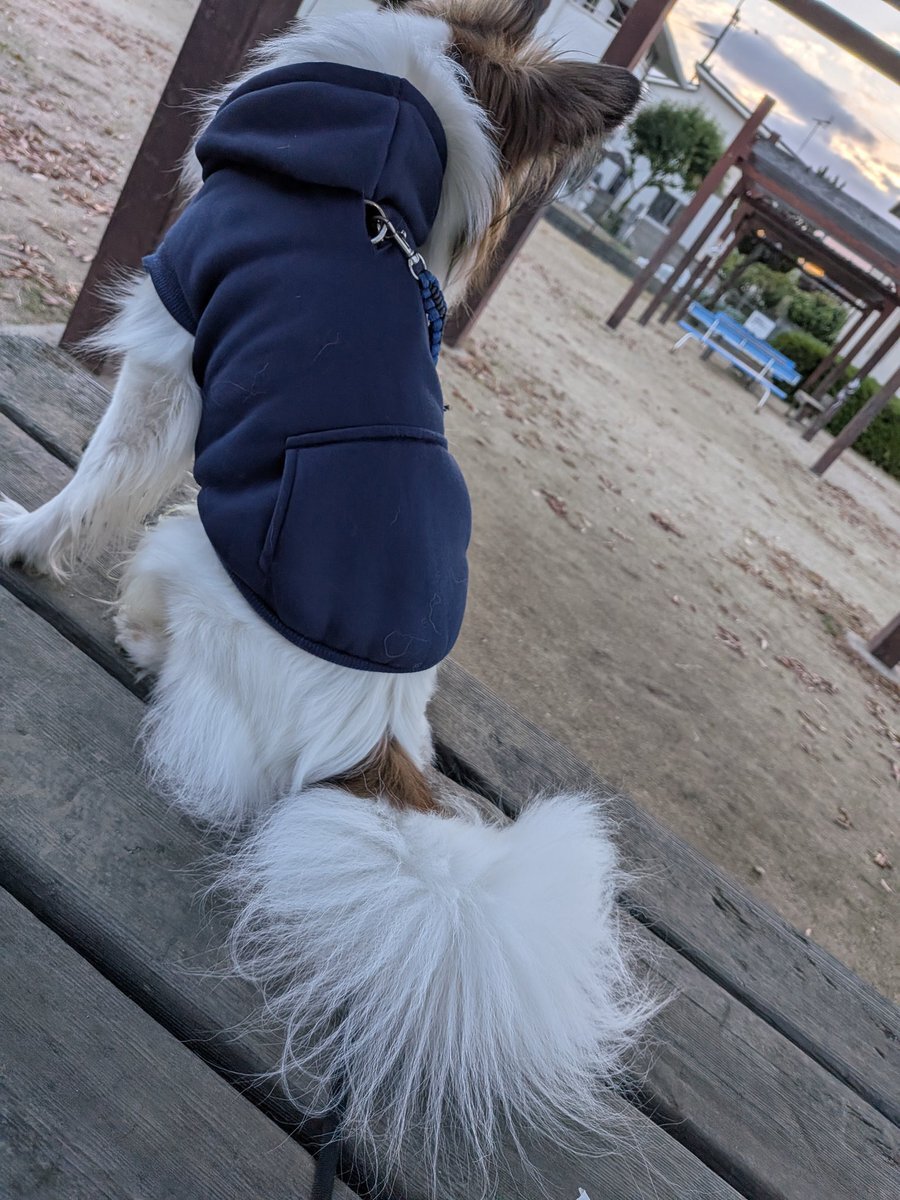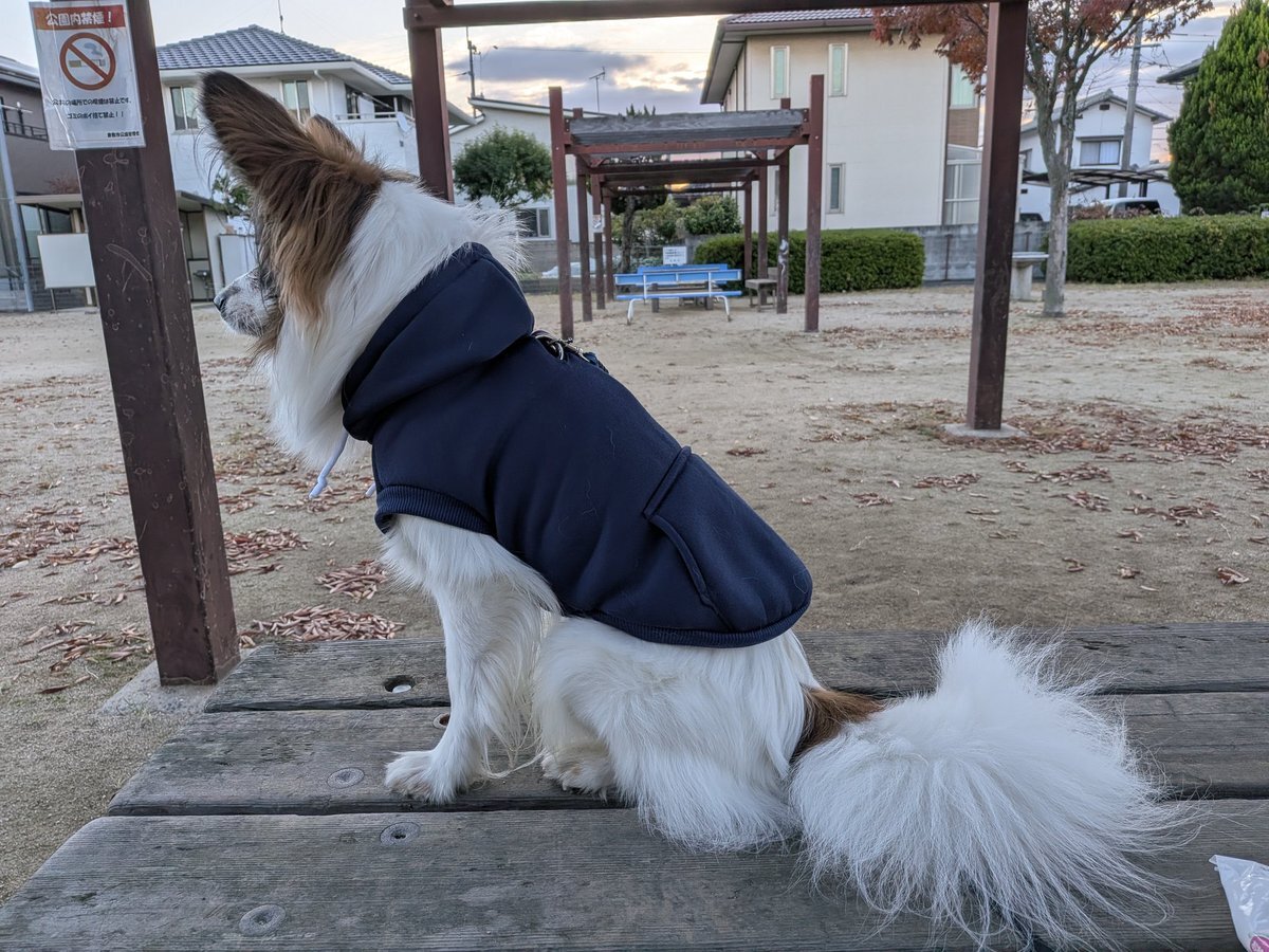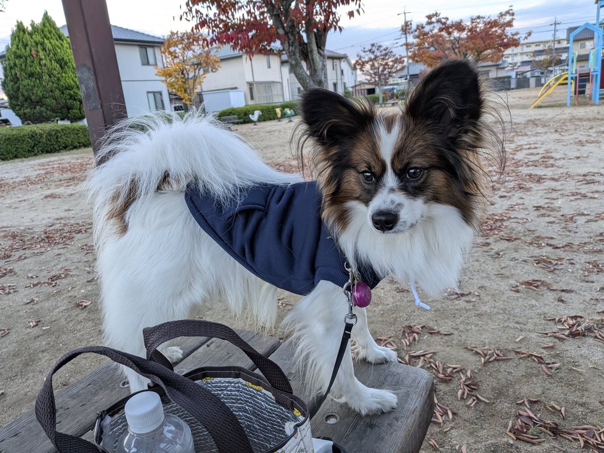 11月18日㈫の朝んぽ。 DAISOの服着せてみたら、ネイビーは似合わないパピ。 新倉敷駅前のデイリーヤマザキさんにグレープフルーツジュースがあって嬉しかった。 マンジャロ打って、ジュースをよく飲むようになったわ。 飲み物は水かお茶、コーヒーはブラックと決めていたんだけど。。。 #パピヨン pic.x.com/vnm0TFGtqZ