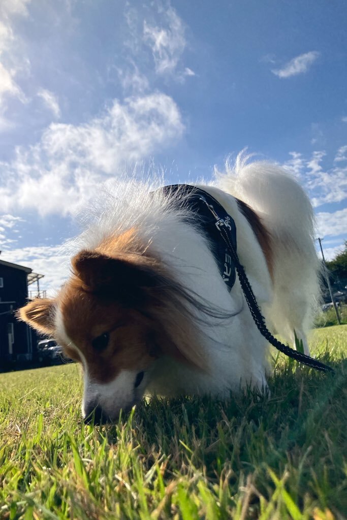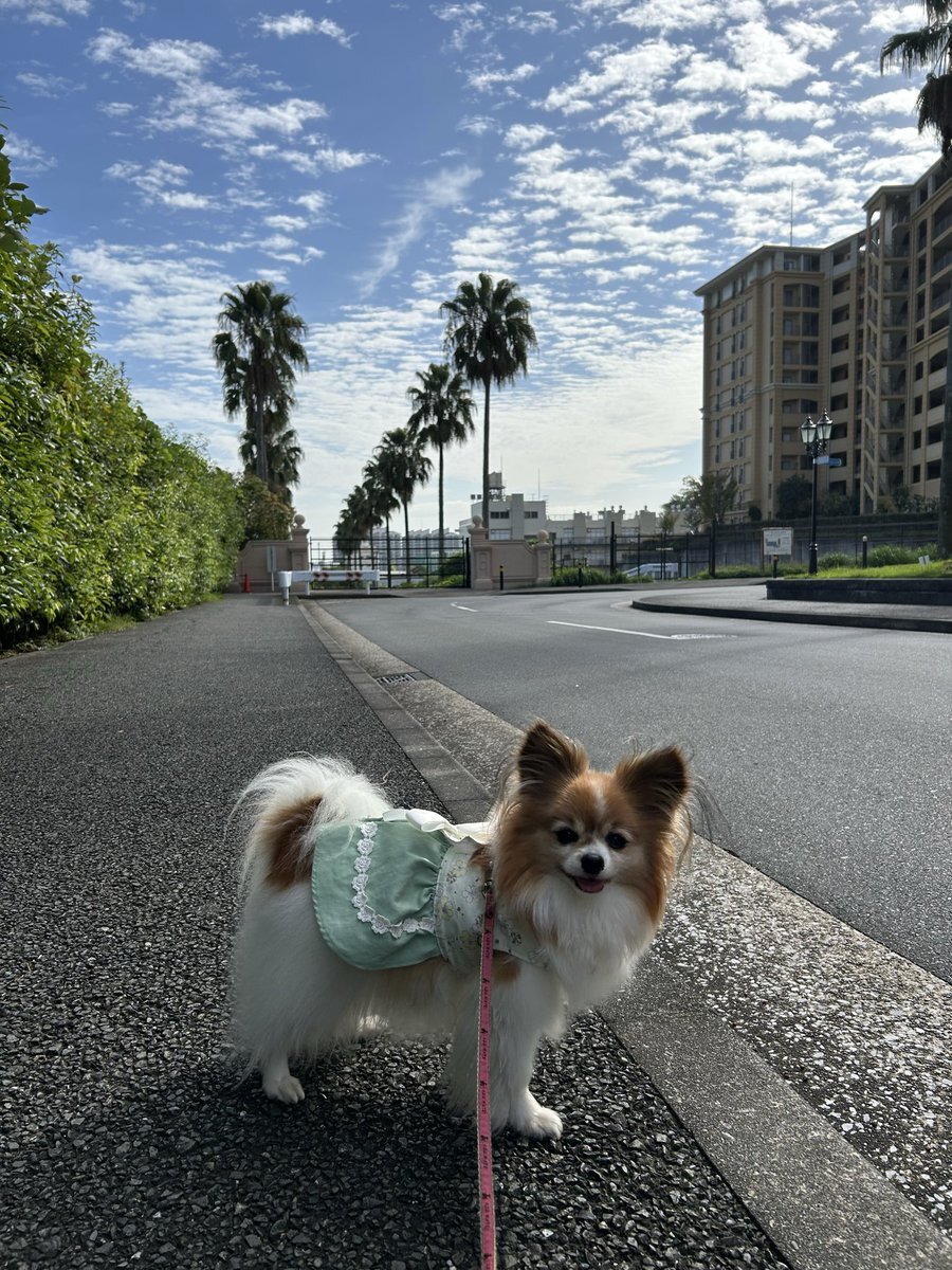 昨日と今日のてんさんぽ🐶🐾 昨日は雲一つない綺麗な青空見れました☺️ 今日はポコポコした雲秋の空ですね☺️ #てんちゃん20190502 #犬のいる生活 #パピヨン pic.x.com/wsyf86m2Pz