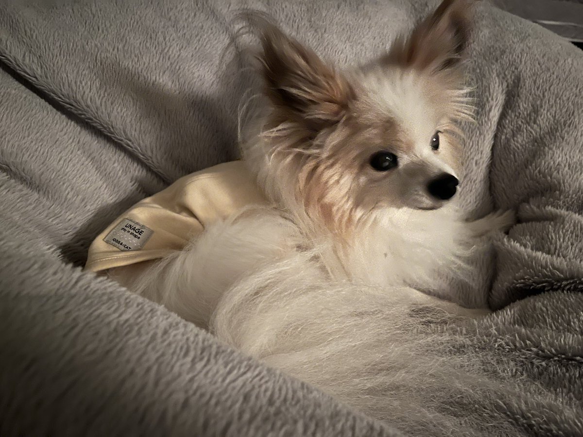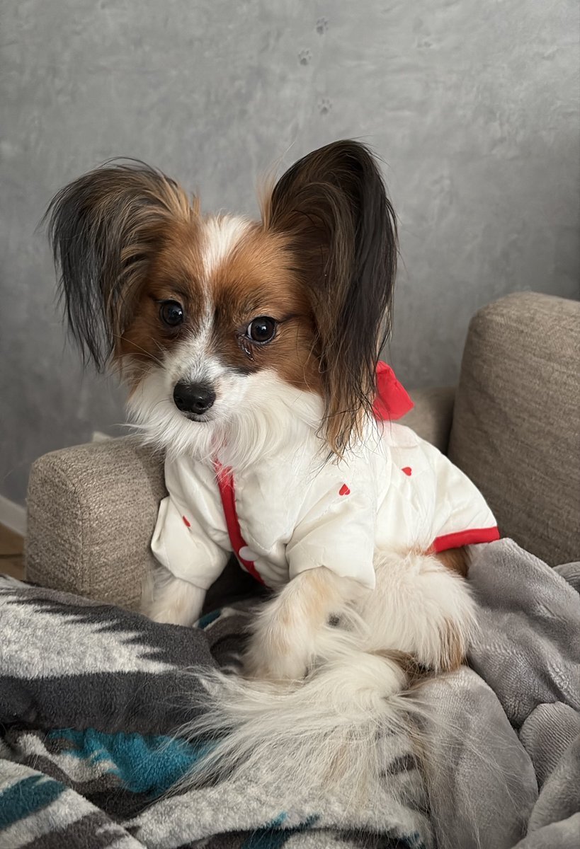 異常に寒がりなもも🍑 お散歩イヤイヤな季節がやって参りました😅 いい感じの部屋着が届くまでダウン着ときなさい🤭 ペット用こたつでも買おうかな… #パピヨン #きょうのわんこ pic.x.com/7C4XrDVtqE