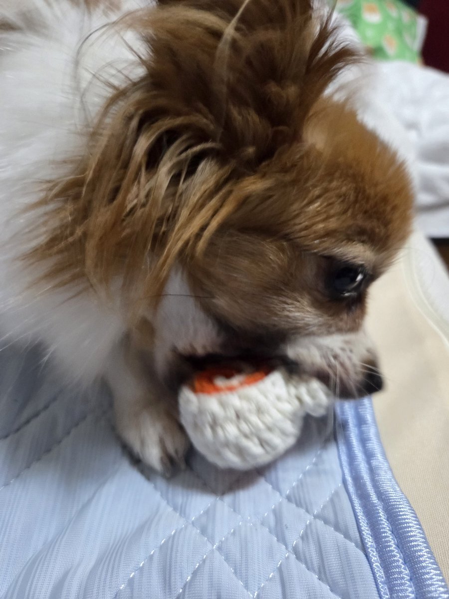 おはようございます。 昨日の夜、☔がだったので地面が濡れていて今日は、抱っこ散歩です。 息抜きで作ったおもちゃで気をまぎらわしてるユズちゃんです。 #パピヨン #犬のいる暮らし #犬のいる幸せ #ワンコ #ワンコにニャンコ大好きな方 pic.x.com/lC7zEaxY06