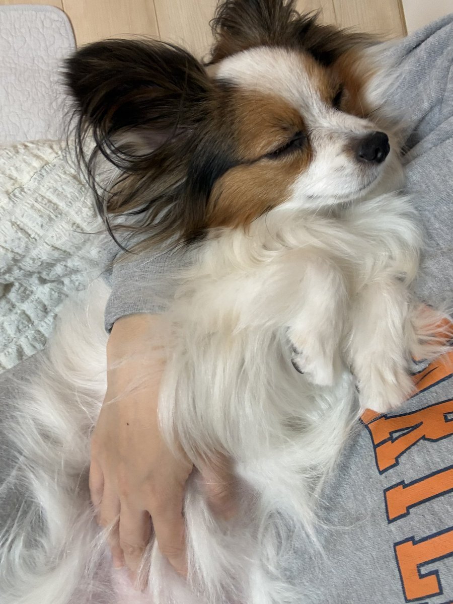 今日寝ぼけてよろけてリリィの事を踏んでしまい信用度が地の底まで落ちてる気がする🫠ごめんよ… #パピヨン #犬のいる暮らし #犬のいる生活 #犬好きさんと繋がりたい pic.x.com/kysnfNm72B