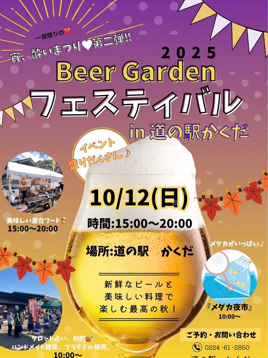 【10/12】🍺宵・酔いまつり第2弾✨「Beer Gardenフェスティバル × めだか夜市」in道の駅かくだ🌙(宮城県角田市) ビール・屋台・夜市の魅力を満喫! 詳細はこちら👉michinokugourmet.com #角田市 #ビアガーデン #めだか夜市 pic.x.com/SMuYCUjTog
