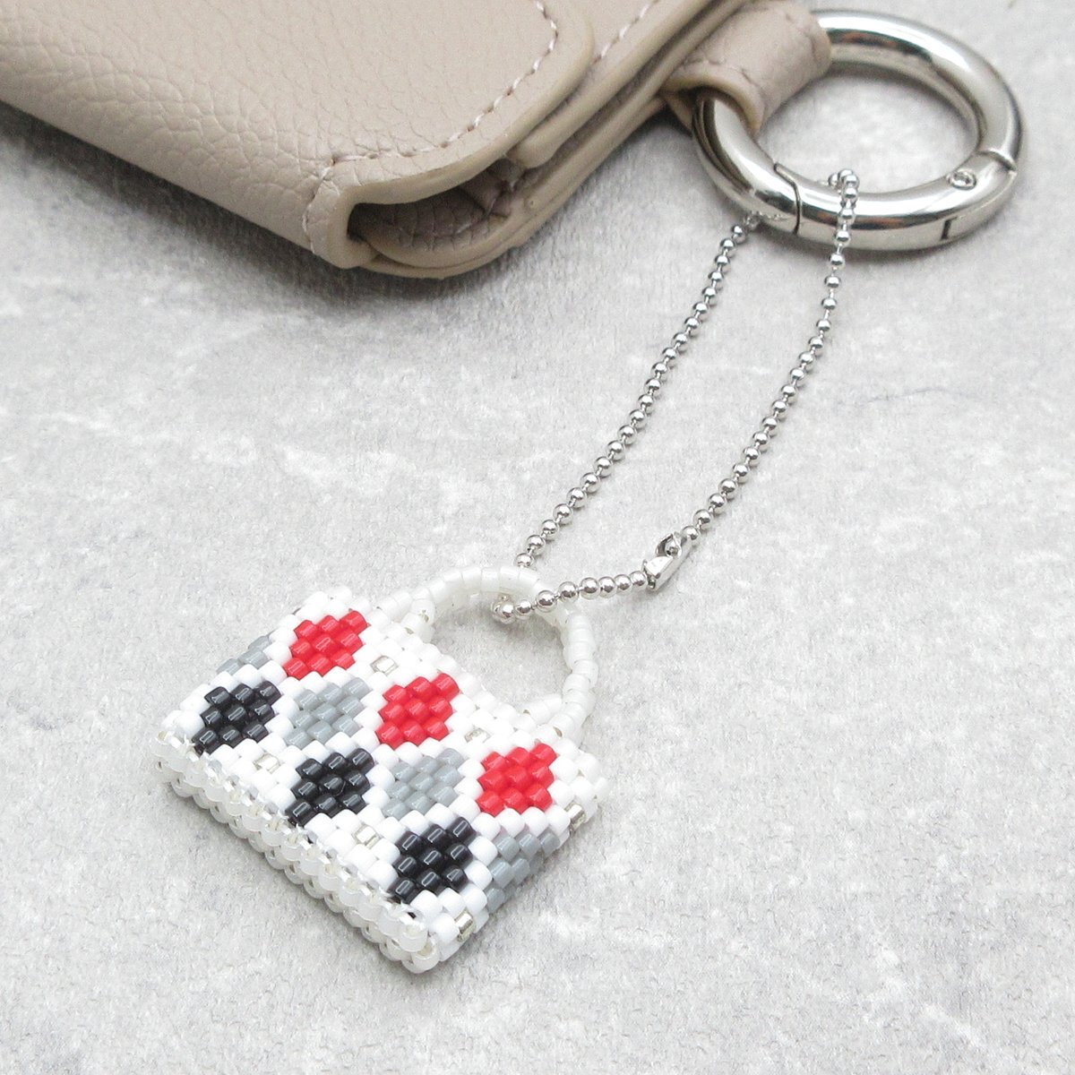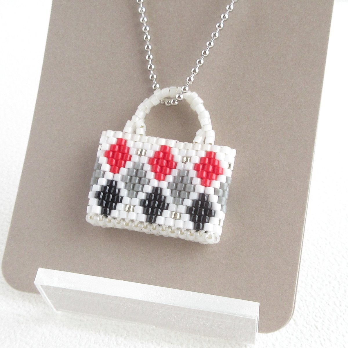 【*新作のお知らせ minne*】 minneでトランプカラーのダイヤ柄ミニミニバッグを販売開始しました👜✨ 白地に赤や黒、グレーのダイヤが目を引く一品です✨ チャーム、ドール用のミニチュアとしても🆗 ♦️minne.com/items/44283491♦️ #minneで販売中 #ビーズステッチ pic.x.com/f7MeTS0Una