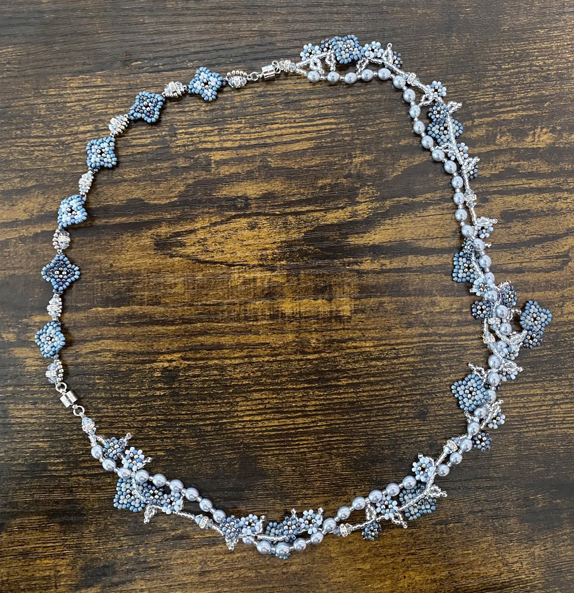 花綴りネックレス〜冬のしらべ〜 ビーズfriendフェスで買ったキット、 やっと完成しました これからのシーズンに活躍しそうなネックレスですね 一緒に買ったブレスレット、イヤリングも続けて作りたい #ビーズステッチ #kimiyell pic.x.com/q6wfqnNzxW