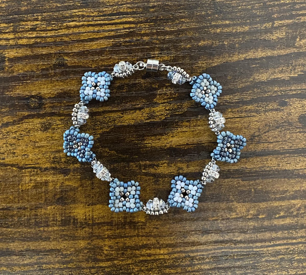 花綴りブレスレット〜冬のしらべ〜 ネックレスに続きブレスレットも完成 ブレスレット単体でも使えるけど ネックレスと繋げると長めのネックレスとしても使える優れもの #ビーズステッチ #kimiyell pic.x.com/L0h1KU3siW