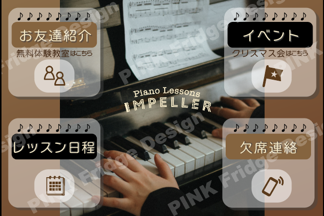 vol.597 冬のメロディーが聴こえてきそうなLINEリッチメニューを制作しました🎵 <ピアノ教室のLINEリッチメニュー> 中央にピアノを弾く写真を配置し、ブラウン×ブラックでクラシカルな雰囲気に。音符がちょっとした遊び心になっています♪ #LINEリッチメニュー #デザイン制作 #ピアノ教室 #ピアノ pic.x.com/99gYY1qjLF