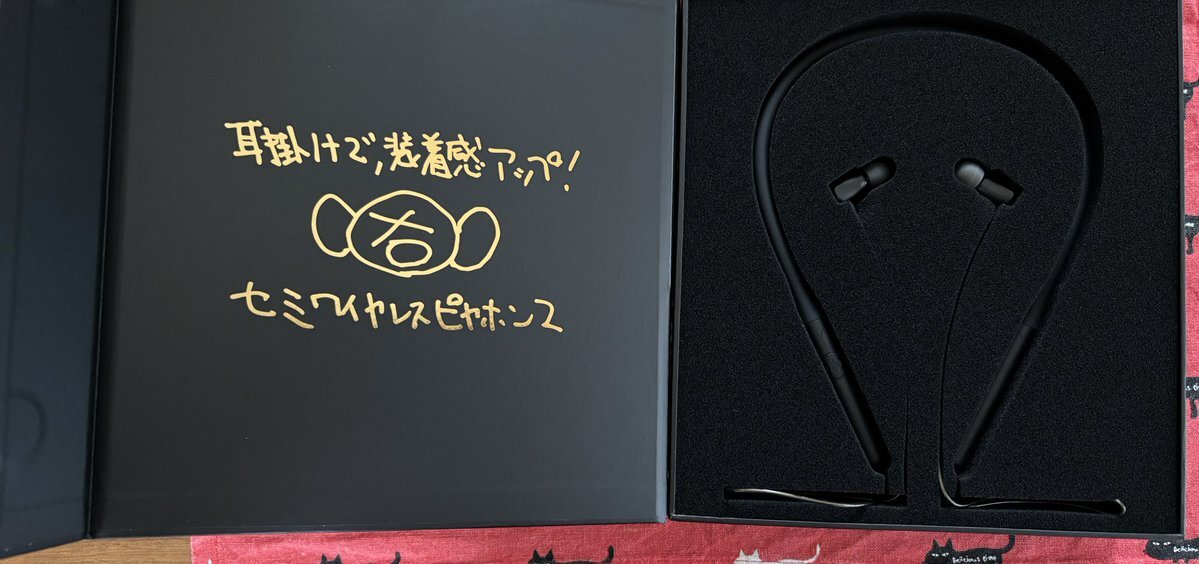 Hi-UnitブースでOSU10と有線ピヤホン5の視聴中、ピエール中野さんが来られたので、持参した有線ピヤホン3の箱にサインをいただきました。 2年前の名古屋と秋葉原、去年の大阪のポタフェスでは叶いませんでしたが、今回幸運にもいただけました。 大事にします。 #ピエール中野 #ピヤホン #ポタフェス pic.x.com/gAnmwEZsHn