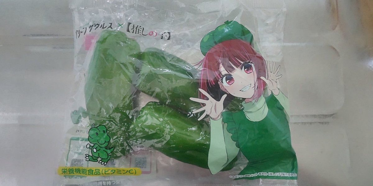 🌟 コラボピーマン発売中🌟 TVアニメ【#推しの子】 宮崎県産ピーマン「グリーンザウルス」コラボ 宮崎県産の冬春ピーマンの出荷が 11月から本格的にスタート🌟 ピーマン体操有馬かなデザイン特別仕様のパッケージが宮崎県内および全国都市部の量販店を中心に販売中!