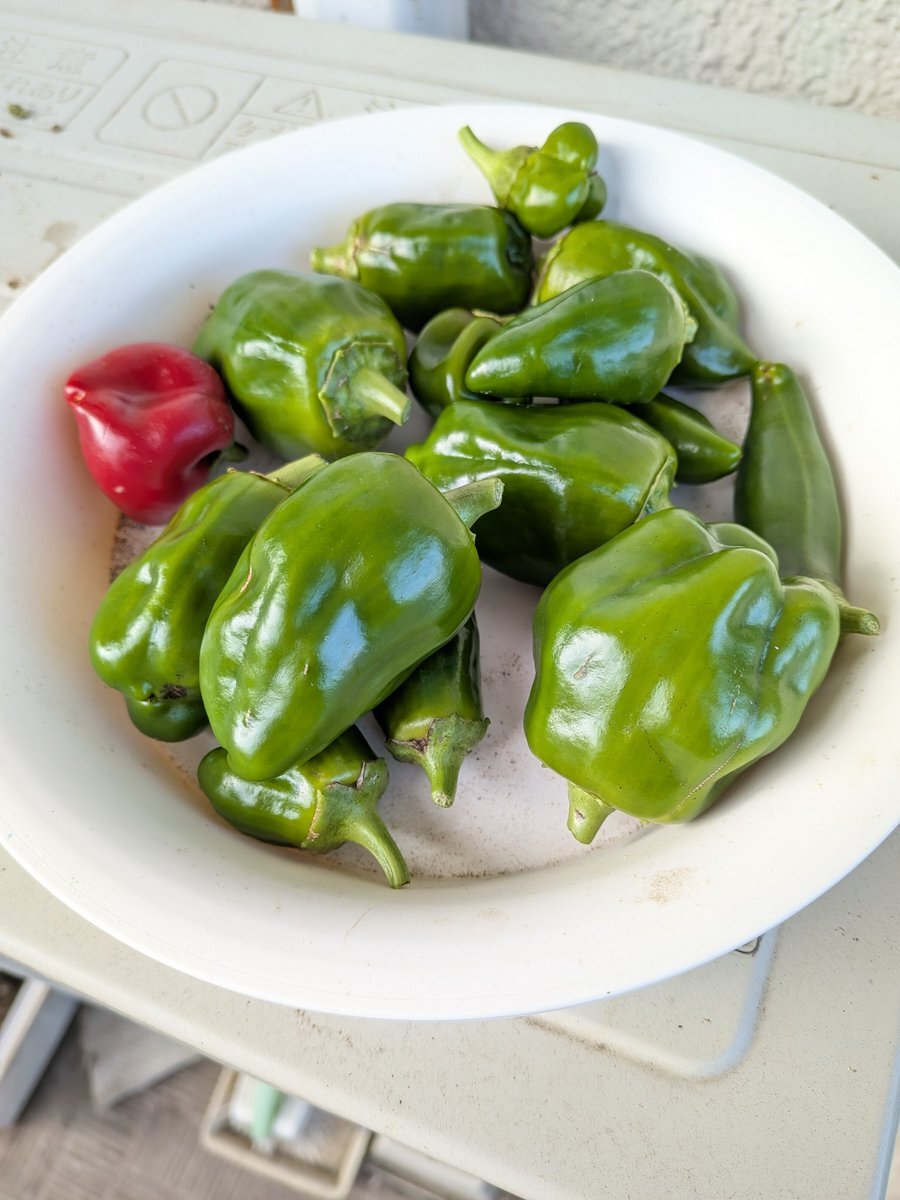 お疲れ様でーす。 庭に出て、ちょっと動くと 汗ばむ陽気です。 やっとグリーンカーテンも枯れたので カメムシまみれで撤収しました😱 ピーマン🫑は放ったらかしに してましたが、そこそこのがそこそこ採れました😁 #家庭菜園 #ピーマン pic.x.com/7EZVj7p7V2