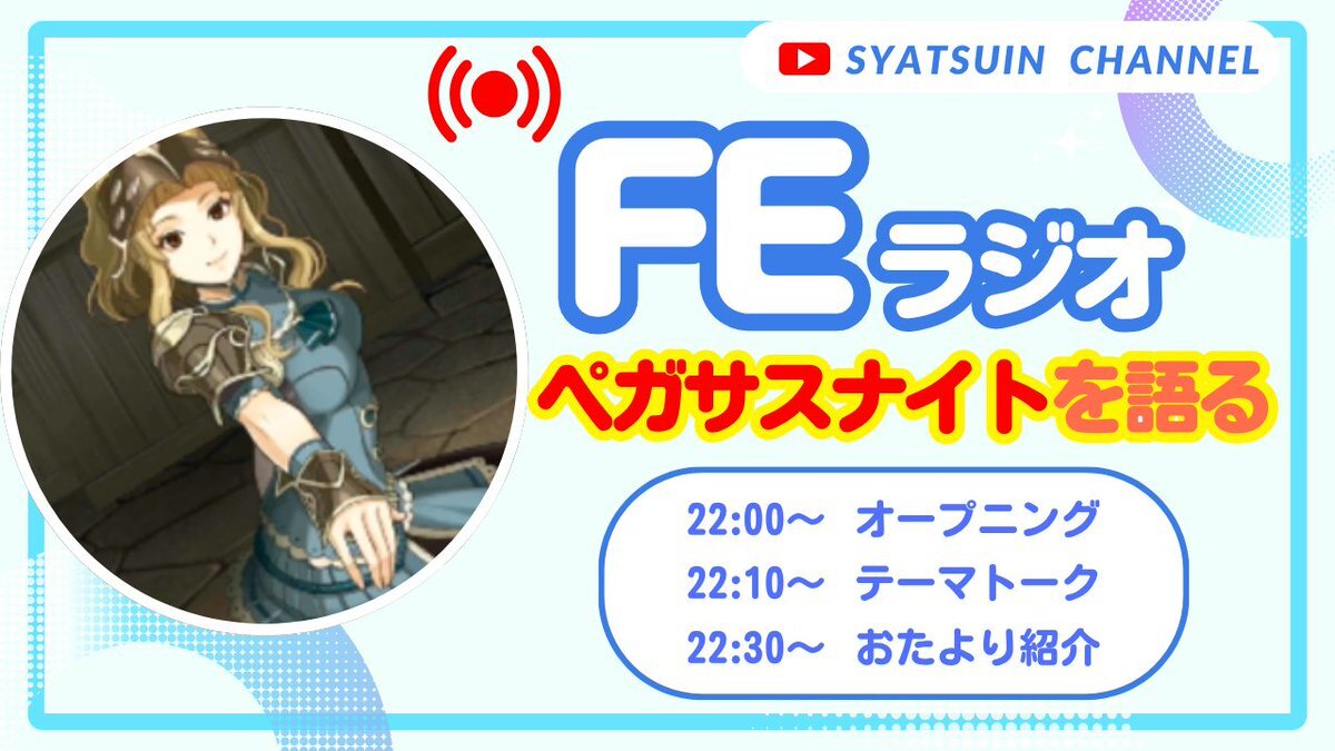 11月21日(金)22:00~FEラジオ🎤 今回のテーマは「ペガサスナイト」! シリーズ恒例の兵種なので、推しキャラ・印象に残ったエピソード・思い出のマップなど語りましょう😊 ペガサスナイトの思い出ぜひおたよりお待ちしてます! 【おたより】 marshmallow-qa.com/o7fs4qapq2gdjsk #ファイアーエムブレム #FE pic.x.com/ex6gCxTQwG