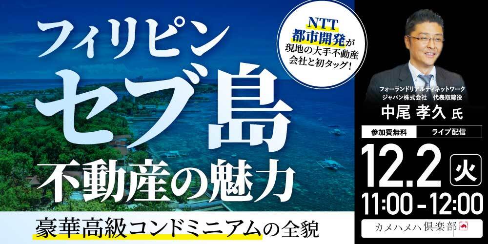 / 12月2日(火)11:00~12:00 ライブ配信 \ フィリピン「セブ島」不動産の魅力 NTT都市開発が現地の大手不動産会社と初タッグ! 豪華高級コンドミニアムの全貌 ↓詳細はこちら↓ gentosha-go.com/ud/seminar/id/… #フィリピン不動産 #セブ島不動産 #高級コンドミニアム #富裕層向けセミナー pic.x.com/k0hsp29ORn