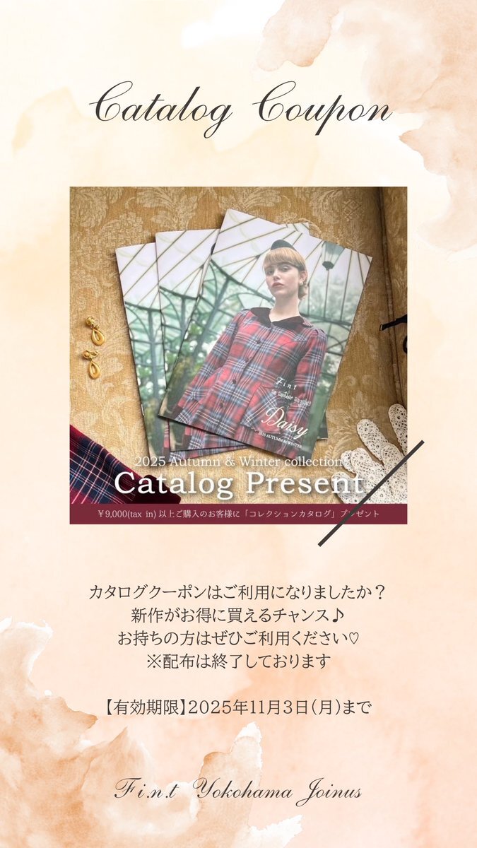📘カタログクーポン カタログをお持ちの皆さま クーポンはご利用になりましたか?✨ お持ちの方はぜひご利用ください♡ #fint #フィント #横浜ジョイナス pic.x.com/ZR5lBqo6yH