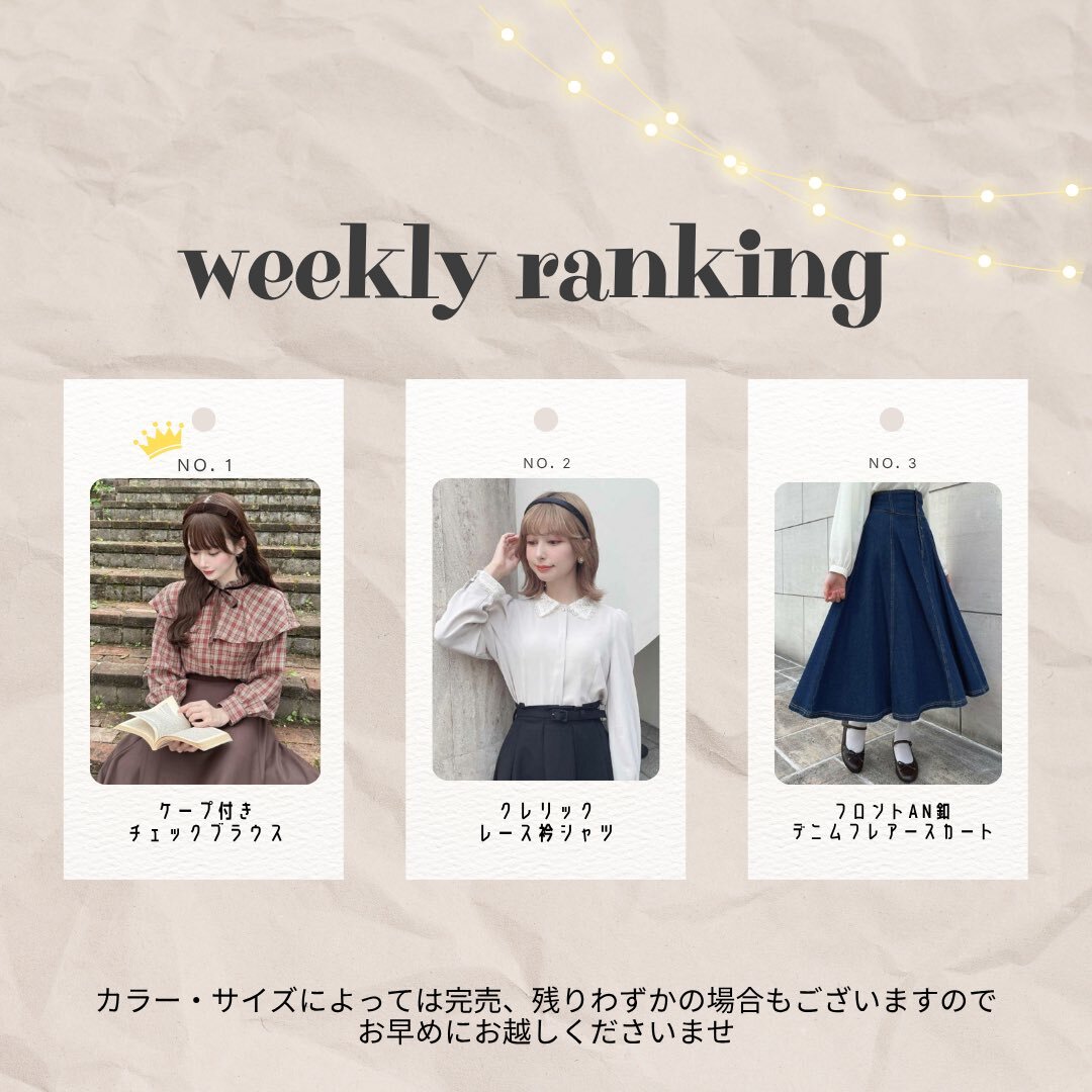 👑WEEKLY RANKING👑 🥇ローズカメオブローチ付きブラウス OFF WHITE / PINK BEIGE 🥈プチレースアップケーブルニットプルオーバー OFF WHITE / PINK / RED / BROWN / BLUE GRAY 🥉シュナウザーケーブルニットカーディガン IVORY / RED / BLUE GLAY #fint #フィント #京都 pic.x.com/qslEbDyrN7