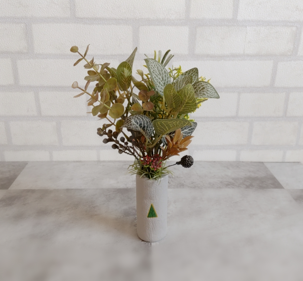 グレーの手作り花瓶に ワンポイント シンプルなグリーンアレンジです🌿 飾り方無限大ですღ'ᴗ'ღ minne.com/items/17351871 フィットニア minne.com/items/24572851 ドライフラワー #minne #フェイクグリーン pic.x.com/5mXRDRO7wP