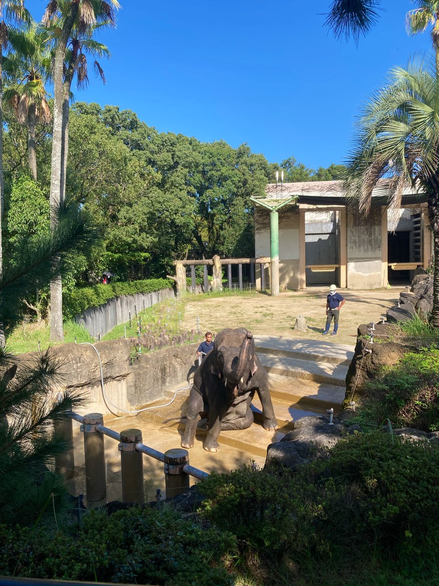 みどりさん、園内お散歩前に、体をきれいにしてもらってた 指示されて、お座りしたり寝転んだり方向転換したり、とってもえらいお利口かわいい尊い #フェニックス自然動物園 pic.x.com/jglMPKSbE5