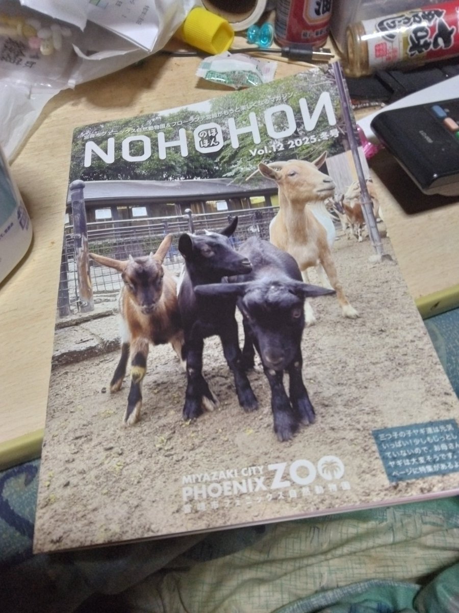 こうちゃんの気になったものシリーズ11月号第3弾 フェニックス自然動物園のフリーマガジン2025冬号 表紙は三つ子のヤギとお母さんヤギです。 #フェニックス自然動物園 #のほほん #ヤギ pic.x.com/CTckarXlqW