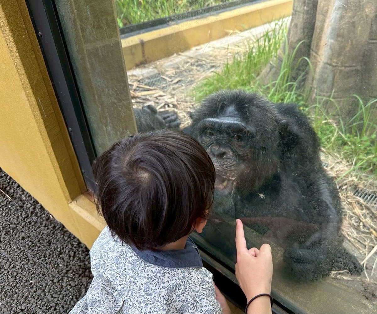 #ケンタ さん、優しそうだな✨旭山男子もちっちゃい子が好きみたいだけど、ときどき泣かれたりしてる🤭 イブさん、ニナちゃんをよろしくお願いします。 #フェニックス自然動物園 #チンパンジー x.com/m_phoenixzoo/s…