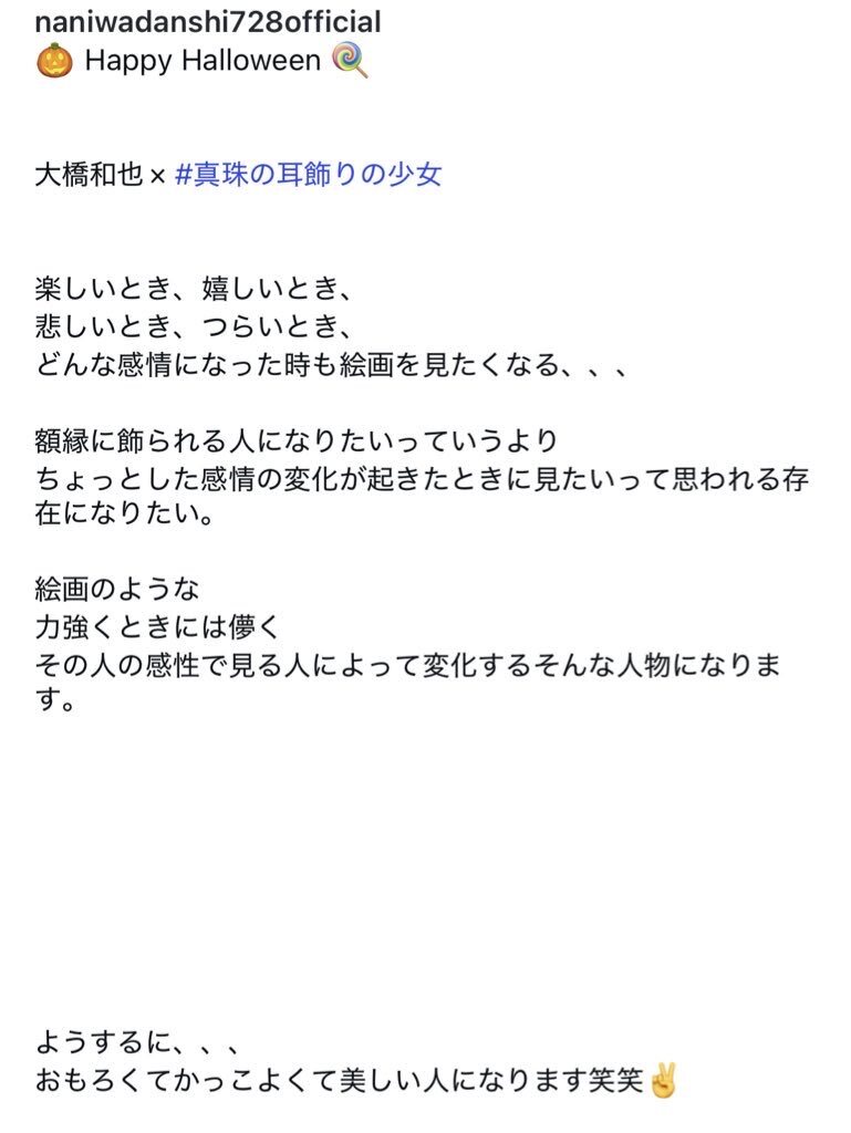 ハロウィン企画でもかずやの優しくて強いだいすきな性格が滲み出てて泣いた😭しっかり考えてくれたんだと思ったら愛おしくて泣けてくる( ;ᵕ; )♡とにかく美人。高畑充希に見える顔のパーツ天才的 #なにハロ2025 #大橋和也 #フェルメール pic.x.com/QhBJiOe5nN