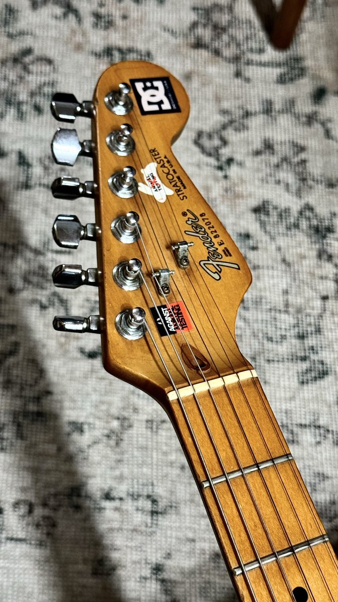 アタシのストラト かわいすぎんか(● ˃̶͈̀ロ˂̶͈́)੭ꠥ⁾⁾ 焼け方ヤバくない⁇ 父ちゃんがくれたスケーターブランドのstickerがカッコええ💕 #fender #フェンダー #ストラト #stratocaster #ギター女子 pic.x.com/vpxkau8pGb