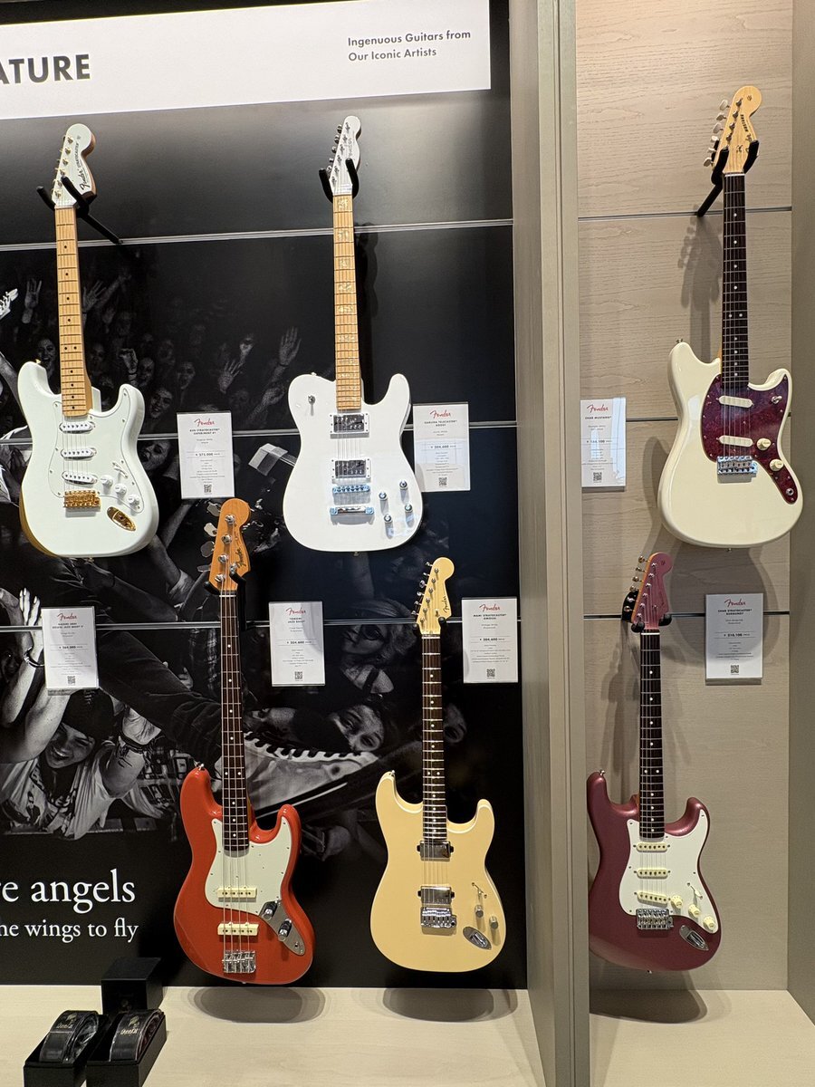 ついに原宿の「FENDER FLAGSHIP TOKYO」やってきました〜エレベーターの中が🟥 ゴジラとコラボの限定ギターもありネックにカタカナでゴジラ⁉️ アーティストモデル欲しいですね😁 #FENDERFLAGSHIPTOKYO #フェンダー #原宿 pic.x.com/Vvw27h4U2T