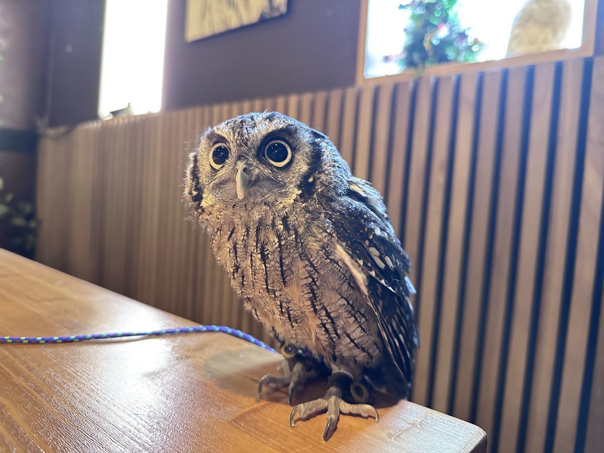 爪と嘴カットのメンテナンスのご利用で スピックスコノハズクのりんちゃんが 遊びに来てくれました🦉 いつもご利用ありがとうございます🙇🏻♂️ #フクロウカフェ #フクロウ #ペット pic.x.com/AXXnBUDCYw