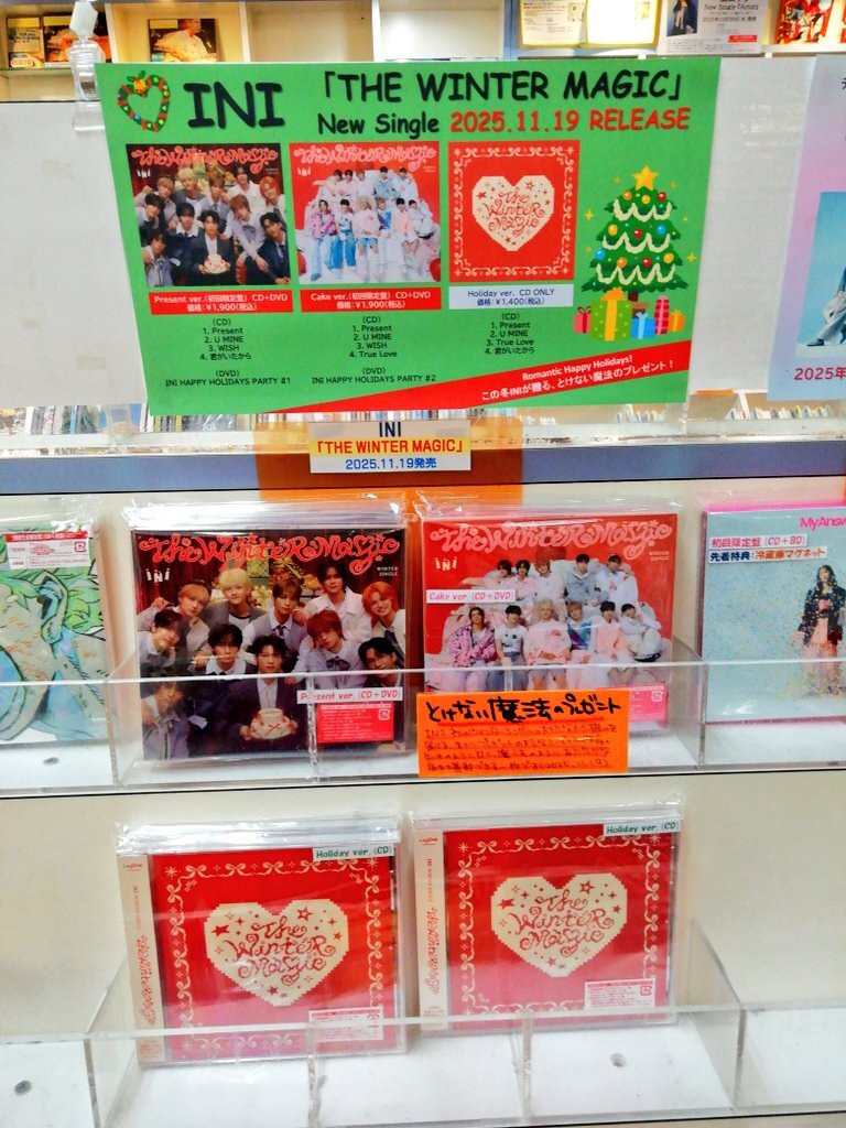 #INI#CD入荷情報 この冬INIが贈る WINTER SINGLE『THE WINTER MAGIC』 入荷しました~⛄ ※<Holiday ver.>のみ在庫切れとなっております。 🎁特典🎁 トレカ(三形態同時購入) ❄️INI×TOWER RECORDS コラボポスター掲出中❄️ #フラゲ日 #INI_THE_WINTER_MAGIC #ウィンマジ pic.x.com/Fm9N22Op5h