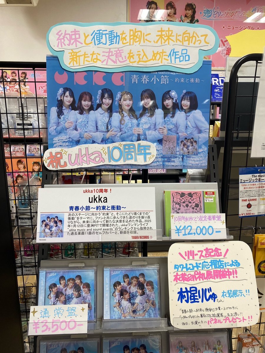 #ukka#ukka10周年 Anniversary Album「青春小節~約束と衝動~」本日 #フラゲ日✨ 新宿店では 💛パネル展 💛#芹澤もあ ちゃん衣装展 💛ukka「NO MUSIC, NO IDOL?」コラボポスタープレゼント(先着でサイン入り!) 💛特典ブロマイド をご用意! 🔗:tower.jp/article/news/2… #新宿アイドル班 pic.x.com/zFeQNWma7B