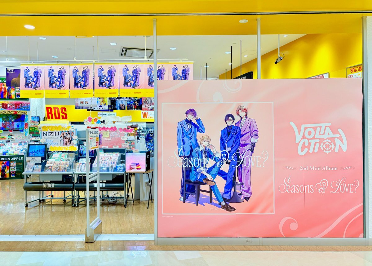#VOLTACTION(#にじさんじ)】 💥VOLTACTION 2nd Mini Album "Seasons of LOVE?"本日 #フラゲ日🎉 そしてなんと!当店名物の大型看板が.. / #ヴォルタ 仕様で大登場いたしました🥳 \ 店頭入口ヴォルタまつりですー❣️☺️ 皆様のご来店をお待ちしております! #CD入荷情報 #フラゲ日 @VOLTACTION_info pic.x.com/7wYuIsXmEe