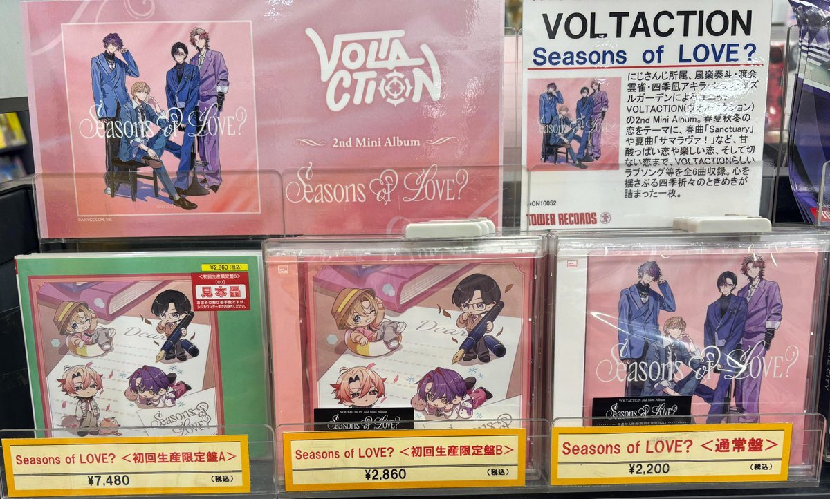 #VOLTACTION】 🌸☀️2ndミニアルバム🎃❄️ 『Seasons of LOVE?』本日 #フラゲ日! 甘酸っぱい恋や楽しい恋、そして切ない恋まで、VOLTACTIONらしいラブソングを収録💓 🎁特典🎁 レプリカチケット🎟️ 🔗tower.jp/article/featur… #CD入荷情報 #にじさんじ #ヴォルタ春夏秋冬 pic.x.com/1lkaNzHz3X