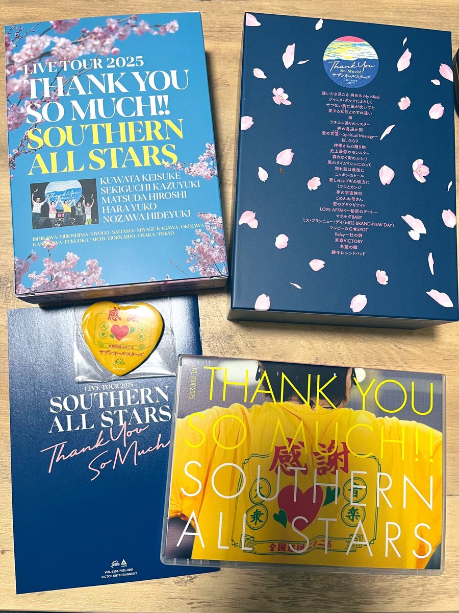 サザンオールスターズ🎸 『LIVE TOUR 2025 「THANK YOU SO MUCH!!」』Blu-ray&DVD 🌸 一足お先にGETしました🎶 家路に着くころ夜間指定で受け取って📦️ワクワクドキドキ開封の儀✨️ 元気をもらえました💗 #サザンオールスターズ #THANKYOUSOMUCH #Bluray #DVD #フラゲ日 pic.x.com/KL2a1rf3tN
