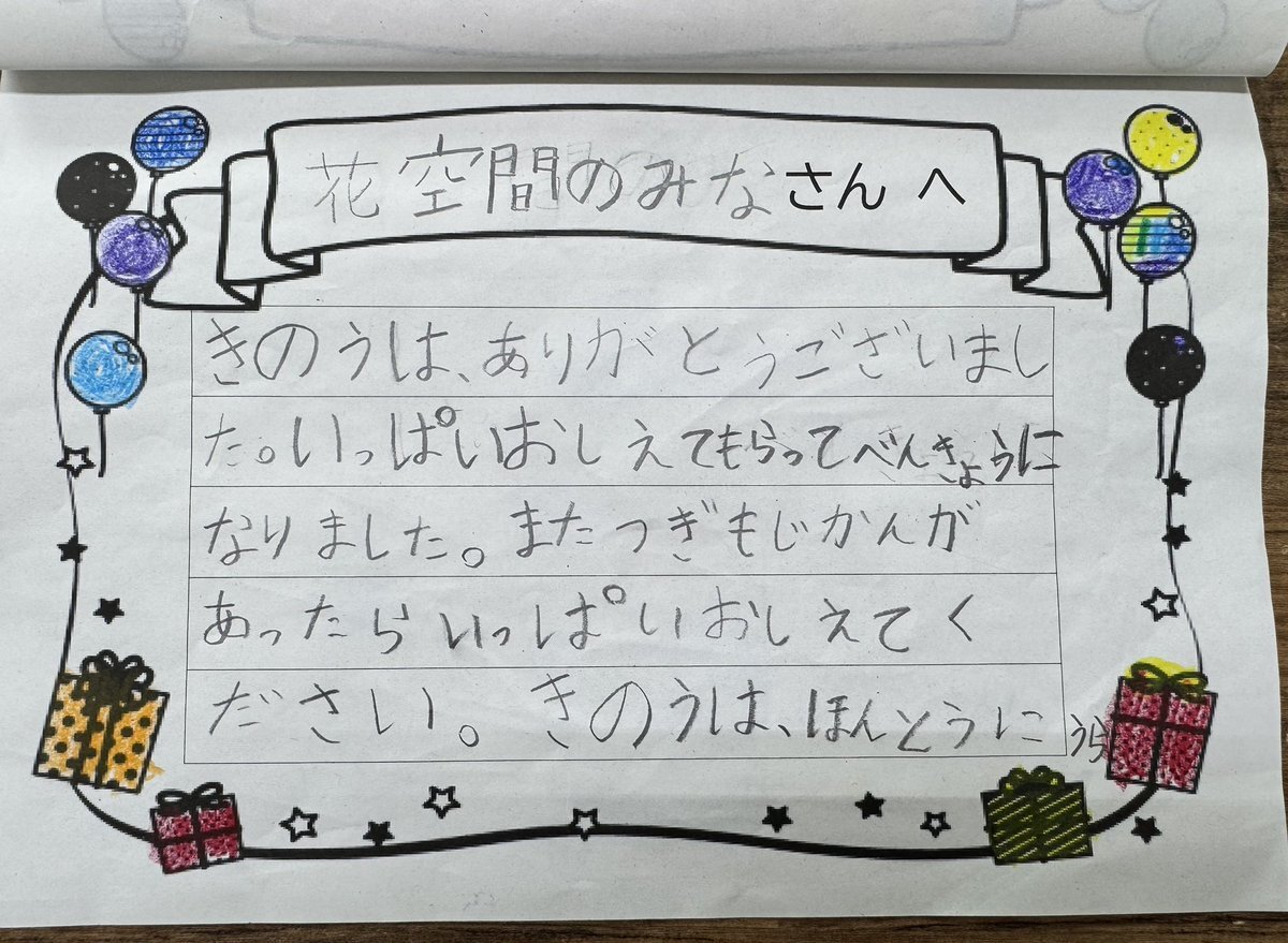 . 先日、2年生の子どもたちが 遊びにきてくれました🍭 素敵なお手紙ありがとう〜!!!💖 絵もすごく上手でほっこりします…☺️🌵 よし、がんばるぞ〜!!!👊笑 #花空間 #愛知県花屋 #名古屋市花屋 #名古屋市北区 #生花店 #フラワーショップ #フラワーギフト #観葉植物 #鉢植え #胡蝶蘭 #生花アレンジ pic.x.com/0RETByQDrf