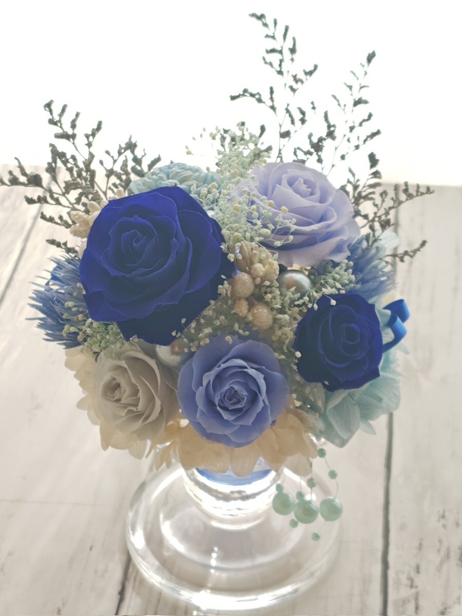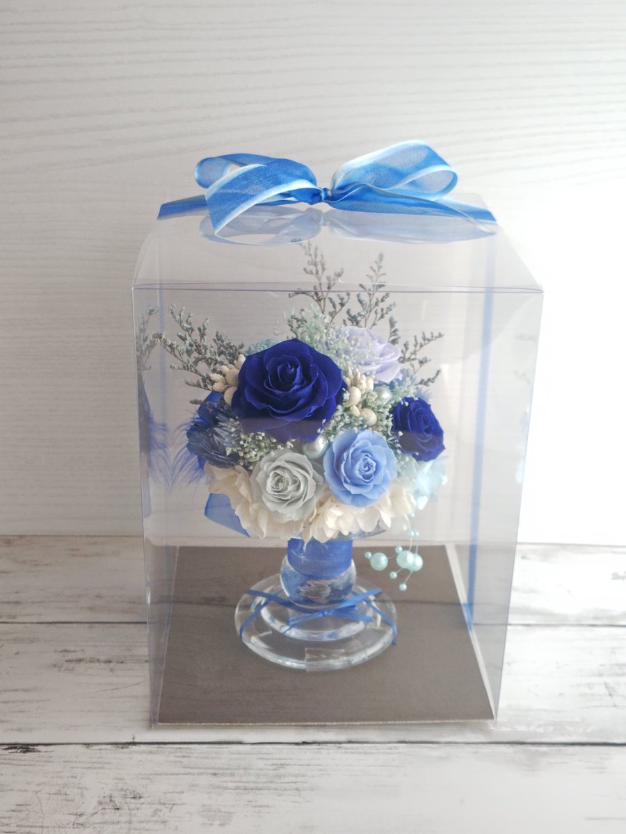 オーダー品のご紹介✨ ガラススタンドのブルー系アレンジ💙🩵 ちょっと大きめ🌹クリアボックスはH20cm🎁 とっても素敵に出来ました💮 昨日お手渡し済みです! #プリザーブドフラワー #花猫らら #hananekorara #フラワーギフト #オーダーメイド #いつもありがとうございます #リピーター様 pic.x.com/aIJ0Jutymm