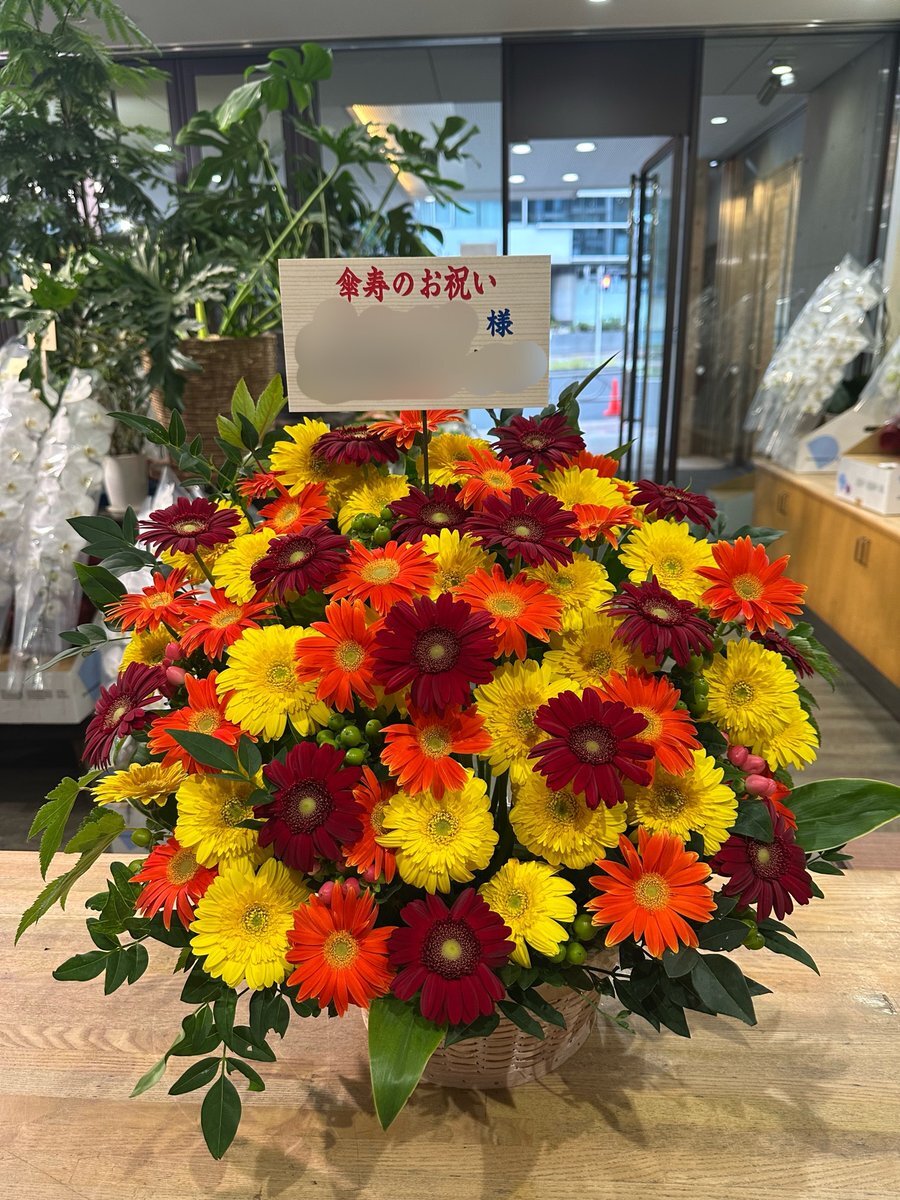 今日の1枚🤳 傘寿のお祝いにガーベラだけでフラワーアレンジメントのご依頼です📩 ご指定のオータムカラーで仕上げました🍂 #港区 #麻布台ヒルズ  #東京ガーデン #フラワーギフト #お誕生日 #傘寿のお祝い pic.x.com/0QYtxrAEz7
