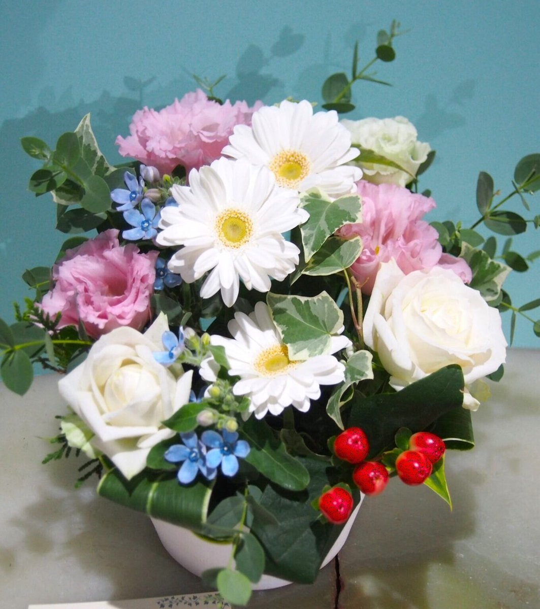 発表会のお祝いに 白&グリーンでまとめた ナチュラルで可愛らしいアレンジメントをご用意しました🌿🤍 凛とした白いお花に 爽やかなグリーンを合わせて 清潔感とやさしさが伝わる仕上がりに👋😜✨#発表会のお花 #白とグリーンのアレンジメント #お祝いフラワー #贈りものに花を #フラワーギフト #送別 pic.x.com/TDGWy4tgOc
