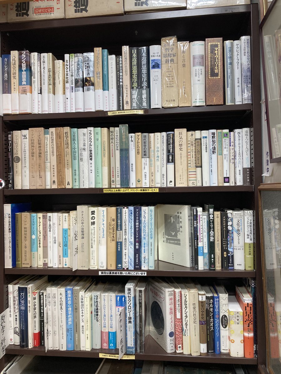 開店しました🍂🧤🌬️ 思想、哲学、心理学などの書籍も1階に棚あります🧠 系列店の巌松堂ビル店🏢にも多くありますので併せてご覧ください🔍📚 本日も18時までお待ちしております🌿 #書店 #東京古書店 #神保町 #古書店巡り #jimbocho #思想 #哲学 #心理学 #ユイスマンス #ヘーゲル #フーコー pic.x.com/97jqkm4uQc