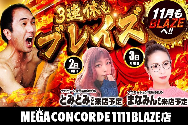 □■━━━━━━━━━━━━■□ 11月2日【日曜日】 朝9時OPEN!! □■━━━━━━━━━━━━■□ 😍11月もブレイズへ😍 🌈来店情報🌈 とみとみさん スロパチ【黄】さん 3連休もブレイズで最新台を楽しもう🫡💥 抽選時間は ⏰8時30分開始予定⏰ #ブレイズ #南区 pic.x.com/UN7cocTuf1