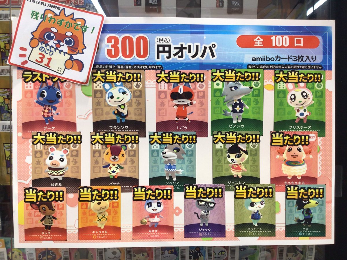🌱今日のオリパ 🌳#どうぶつの森 #amiiboカード オリパ 💰1回300円 全1️⃣0️⃣0️⃣口/残り3️⃣1️⃣口‼️ 📢く残り半分以下です‼️ 💙ラストワン 『#ブーケ』 🎁超大当たり 『#フランソワ』『#1ごう』etc… シングル販売もありますので、気になる方はぜひご来店下さい☺️ #ふるいち #イオンモール土岐 pic.x.com/TxgxDWVWTj