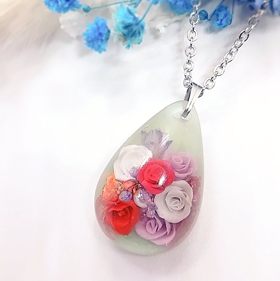 #薔薇 のミニチュア #ブーケ #レジンネックレス🌹 特別な日はもちろん普段使いにも👌 世界に一つだけの花束を胸元に #華やか #アクセサリー #一点物 #ファッション 👇Creemaで販売しております creema.jp/item/15711453/… pic.x.com/jpMZdYH3iN