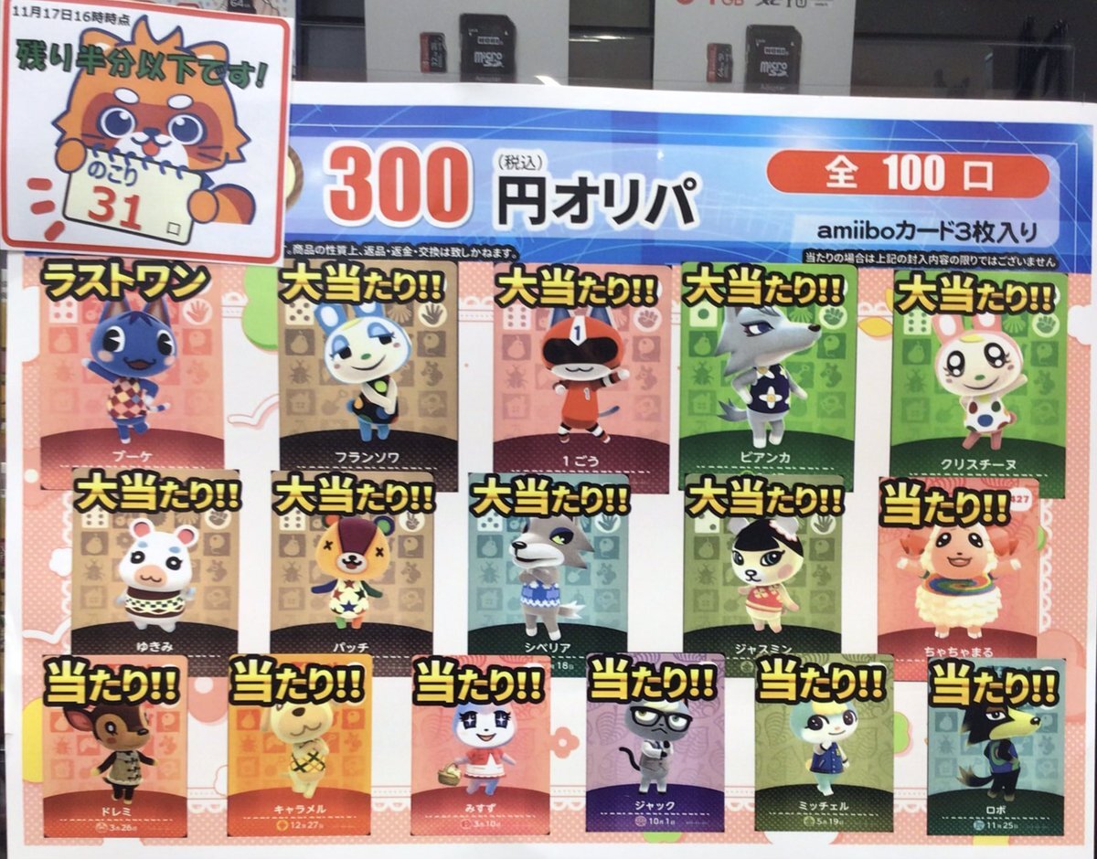 🌱今日のオリパ 🌳#どうぶつの森 #amiiboカード オリパ 💰1回300円 全1️⃣0️⃣0️⃣口/残り3️⃣1️⃣口‼️ 📢く残り半分以下です‼️ 💙ラストワン 『#ブーケ』 🎁超大当たり 『#フランソワ』『#1ごう』etc… シングル販売もありますので、気になる方はぜひご来店下さい☺️ #ふるいち #イオンモール土岐 pic.x.com/YAVZwNRILc
