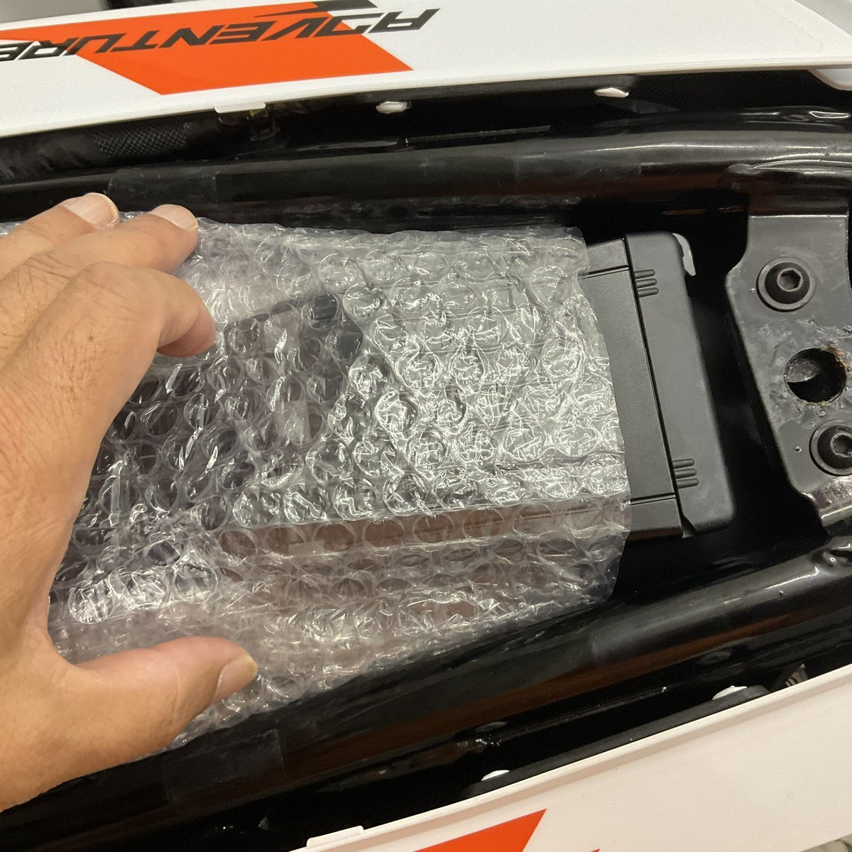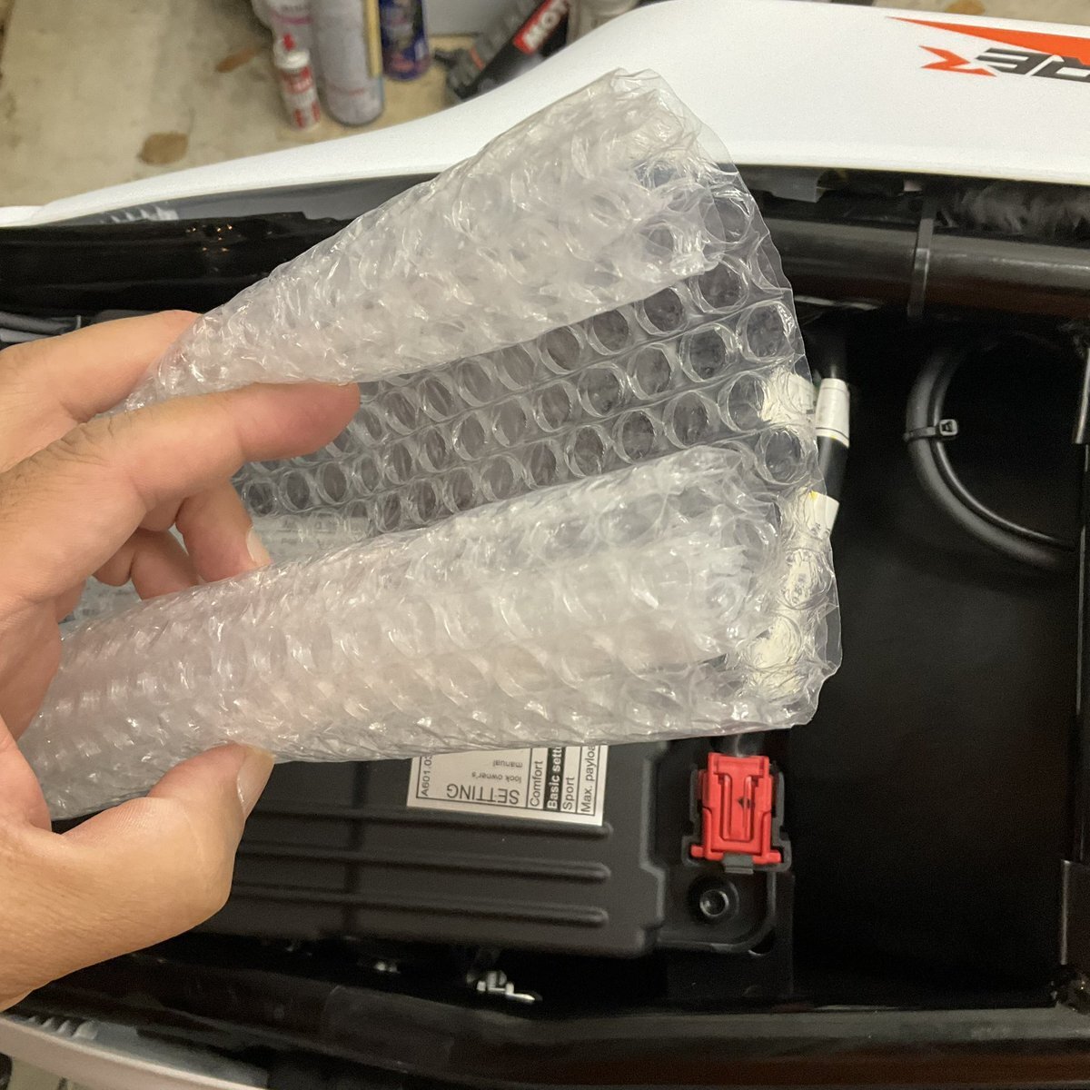 #390adventureR #気泡緩衝材 #プチプチ #両側を丸めて前から挿入 #余った部分も折り返して挿入 #ダートで暴れない Amazonの梱包で入ってくる気泡緩衝材は潰して遊ばないで利用しましょう!(´∀`*)/ pic.x.com/jvDd8TnHQc