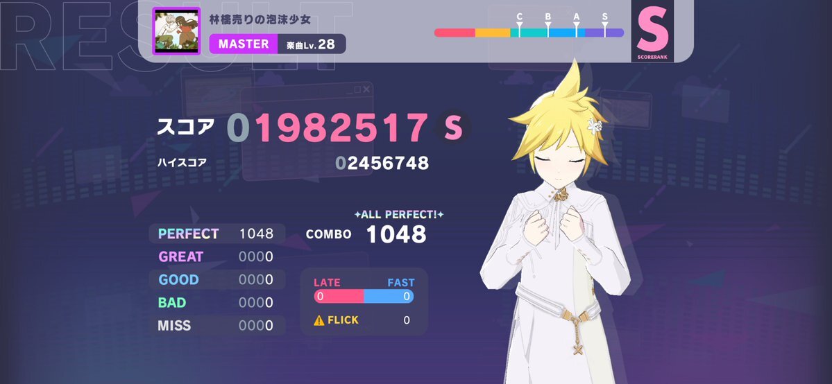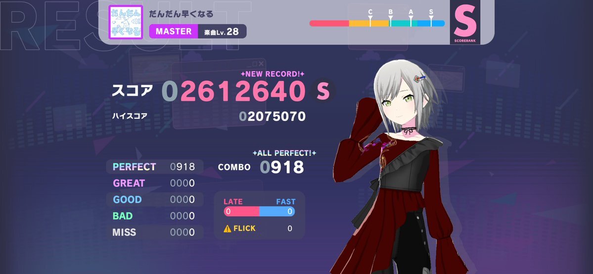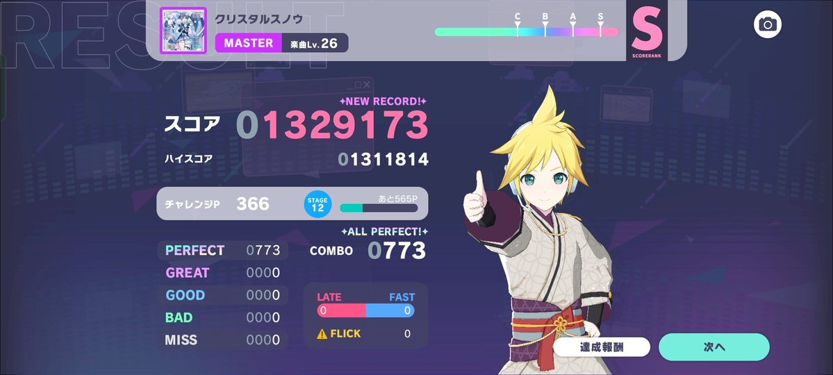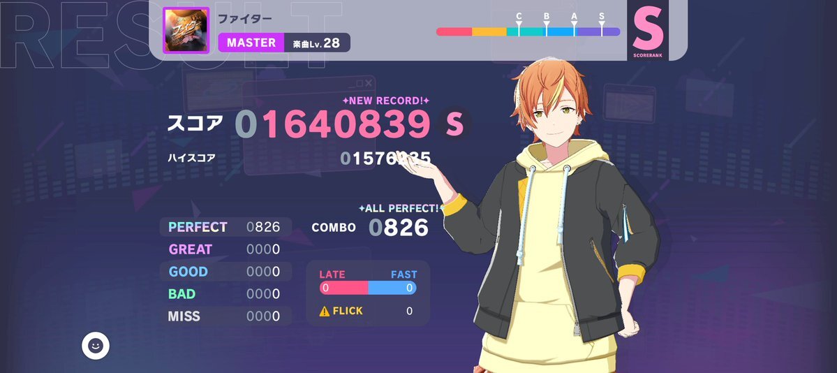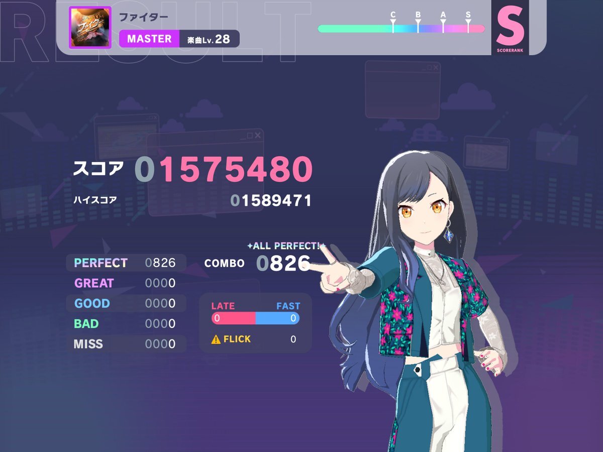 ファイター MASTER AP🌈 新たな新境地に向かうビビバスの覚悟を感じる楽曲! スライドにとても遊び心があって初見は少し難しかったけど慣れたらすぐ出来て良かった🎤🥞 今までとはまた一味違うテイストのイラストや楽曲で可能性がとてもすごい😳 #プロセカ #プロジェクトセカイ pic.x.com/rTngPn1k5D