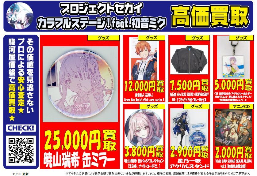 一部の強化買取りをご紹介いたします!! ♪今回は #プロジェクトセカイ をピックアップ♪ 買取センターでは商品ジャンル問わず買取可能! ぜひ秋葉原買取センターへお持ち込みください!! #駿河屋 #秋葉原買取センター pic.x.com/sNLt17VVdN