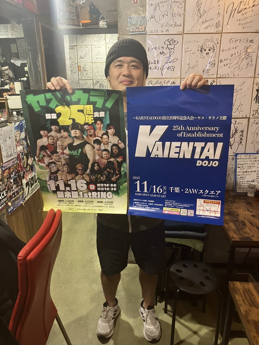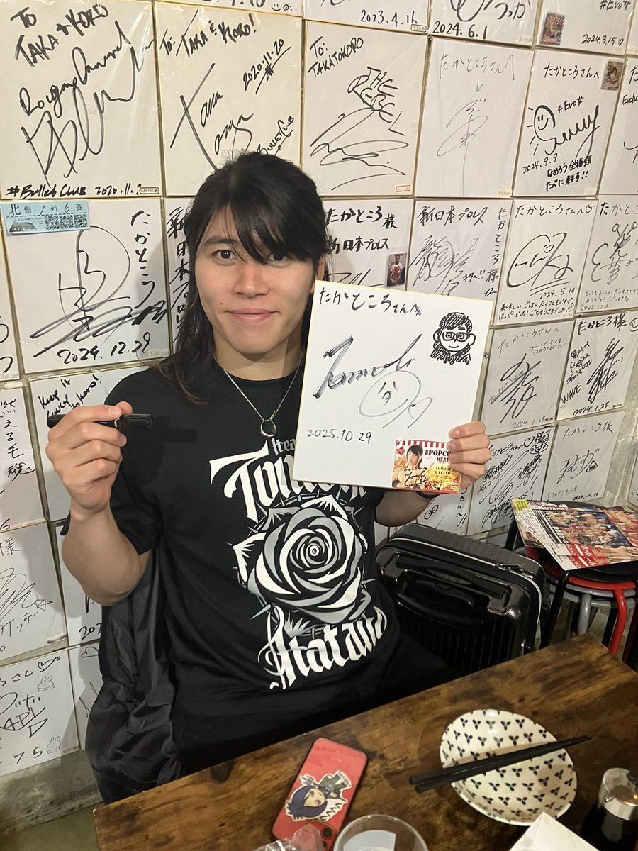 プロレスラーの皆様も プロレスファンも集まるお店たかところ 素敵なお客様のご来店です ヤス・ウラノ選手ご来店です 11/16日なんと昼、夜興行!すごい ぜひ会場での応援よろしくお願いします たかところはポスターやフライヤー いつでもお気軽におもち下さい #プロレス #プロレスラー #プロレスファン pic.x.com/1HYjzwLvSO
