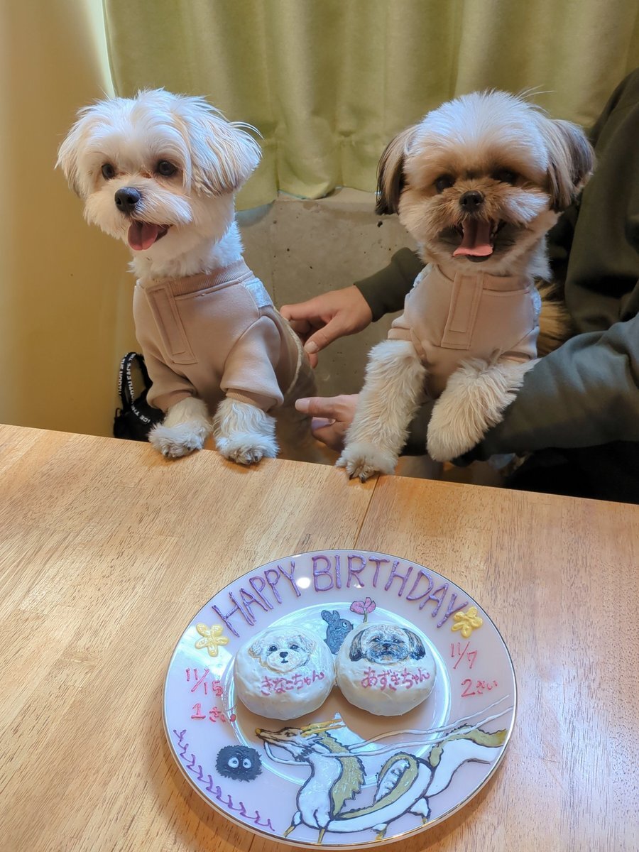 みんなお誕生日おめでとう!! わんちゃんも飼い主様も幸せそうだとこちらまで幸せになります♡ (当店お犬様ファーストの為、机に手が乗っているのは、ご容赦下さいませ✨️) #東北沢 #カフェ #ペット同伴可 #チワワ #マルプー #マルチーズ #プードル #イングリッシュコッカースパニエル pic.x.com/oVHb6rvS88