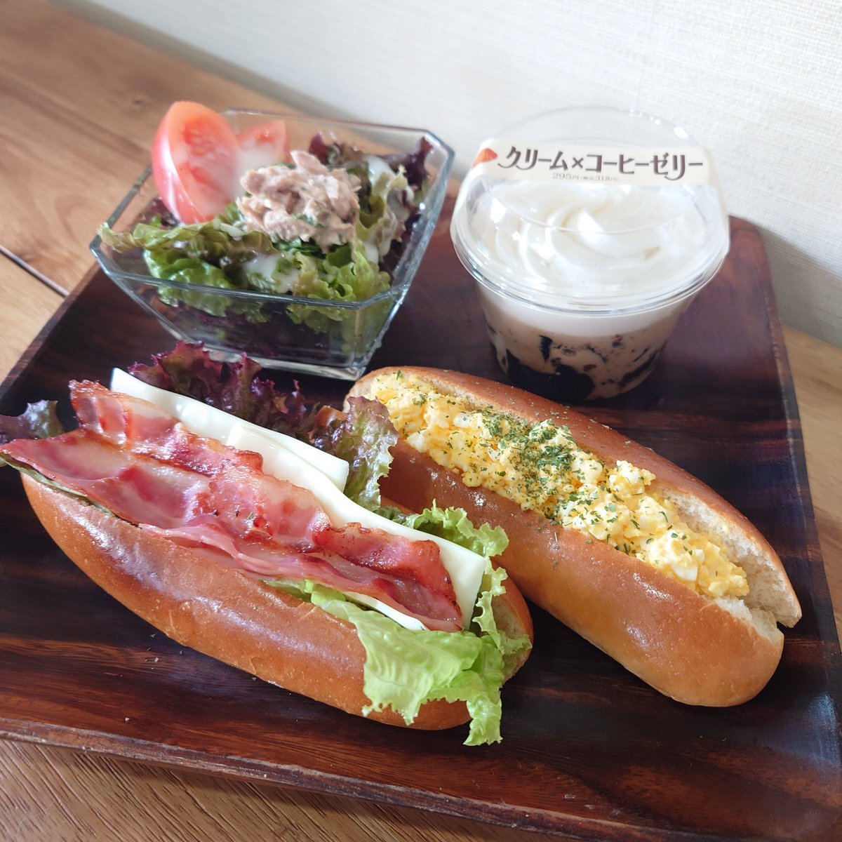 おはようございます☀️ 豪華な朝ご飯! 🌭カリカリベーコンドッグ 🌭たまごドッグ 🥗トマトサラダ ☕クリーム&コーヒーゼリー クリーム&コーヒーゼリー、半額というか2個で1個の値段だったんです!つまり…冷蔵庫にもう1個あるんです!幸せ😆〜✧*。 #おうちごはん #ベーコン pic.x.com/98iuNDE4Gk