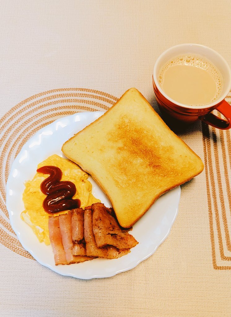 おはようございます🍀 朝ごはん食べます😋 🍞半分にしとけばよかった…😵💦 昨日の初出勤はドキドキ💓しましたが皆さん良い人そうだし仕事も難しくなく続けられそうと感じました😊 明日からも頑張る💪 今日もよろしくです💕 #朝ごはん #おうちごはん #トースト #スクランブルエッグ #ベーコン pic.x.com/hswHkeTVkB