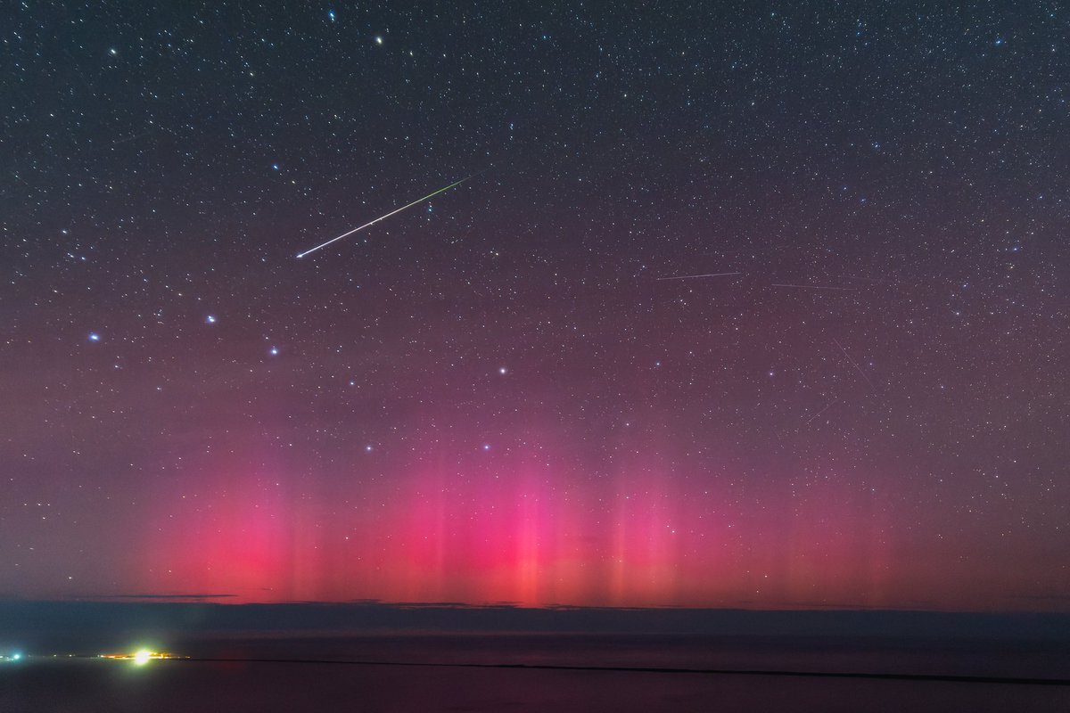昨夜のオーロラ&ペルセウス座流星群の天体ショーは、本当に奇跡の一日だったと思います その中でも一番のベストショットがこちらです 柱状に伸びるオーロラの頭上に流れ星が落ちていきました 2024.8.12 23:56分 佐呂間町にて #ペルセウス座流星群 #オーロラシチズン北海道 pic.x.com/mm8UFiwdbH