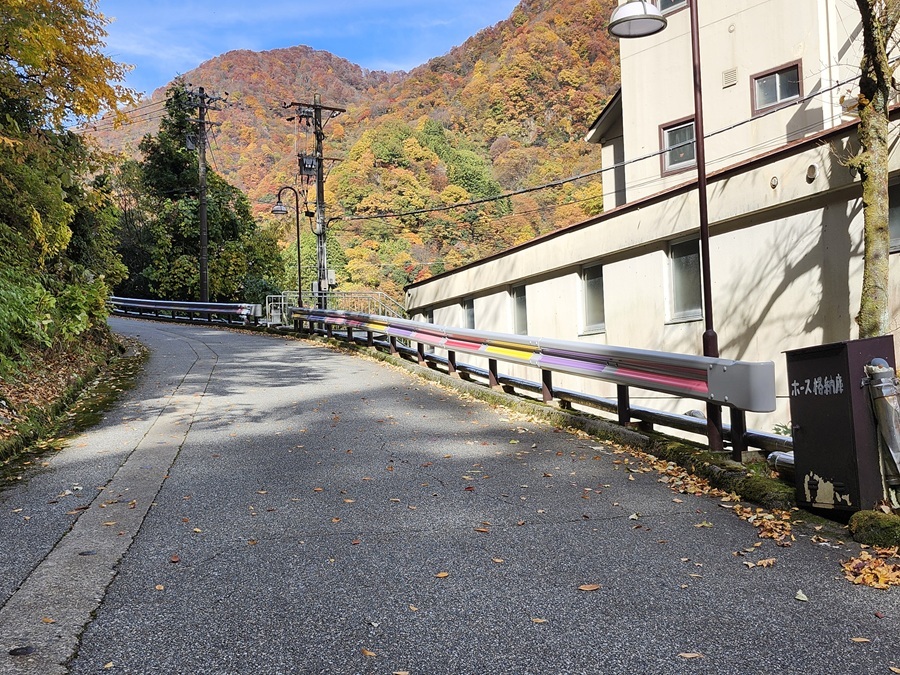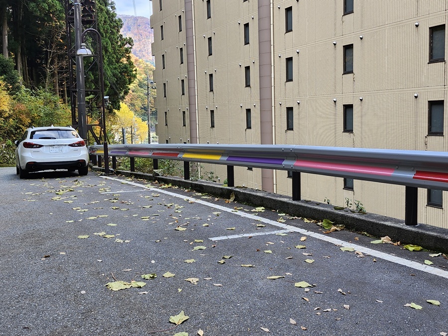 火照黒子よ、皆さんご機嫌よう😃 ホテル黒部に至る道路のガードレールに変化が‼️ あら⁉️なんだか可愛いガードレールになってる😍 紅葉🍁で色付きはじめた山々を見ながら、のんびり歩くのも楽しくなるわね☺️ ウフ🩷❤️💛💜 #momoclo カラー #ももクロ カラー
