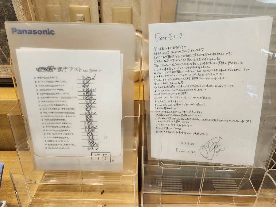 【ホテル黒部】4/4 そういえばご存じでしたか? 春の一大事2012横アリのれにちゃん漢字テストの解答用紙とファンクラブイベント2013夏菜子回の夏菜子ちゃん直筆のお手紙(どちらもコピー)をもらえますよ。気になった方は是非フロントへどうぞ^^ #ももクロ #春の一大事2019 Day2403 #ホテル黒部 pic.x.com/FlhTIJ1xM5